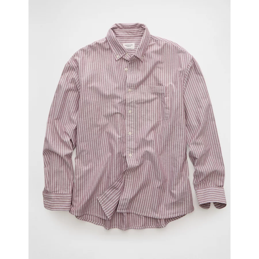 AE Everyday Relaxed Oxford Button-Up Shirt – Red