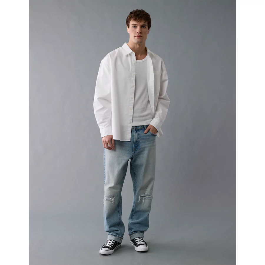 AE Everyday Relaxed Oxford Button-Up Shirt - Light Blue
