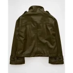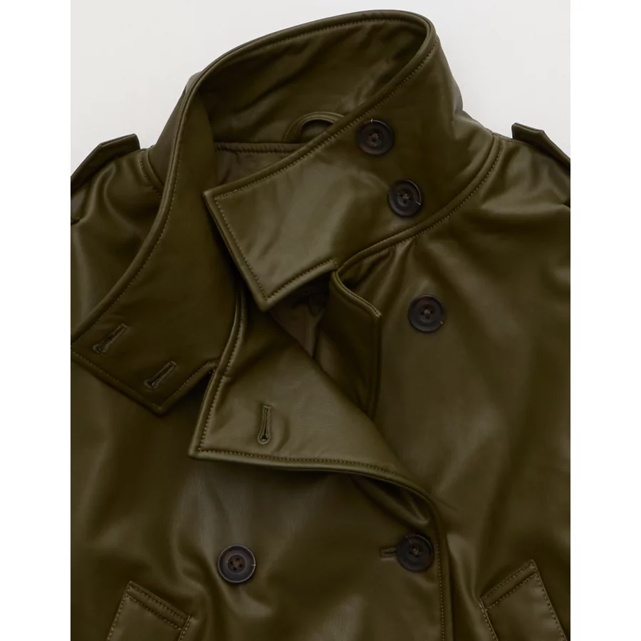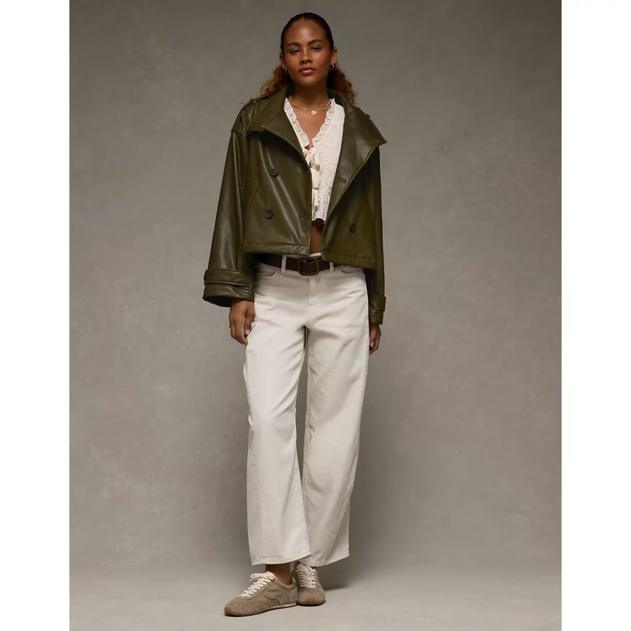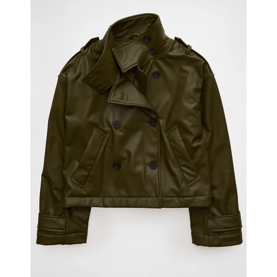 AE Faux Leather Cropped Trench Jacket – Olive