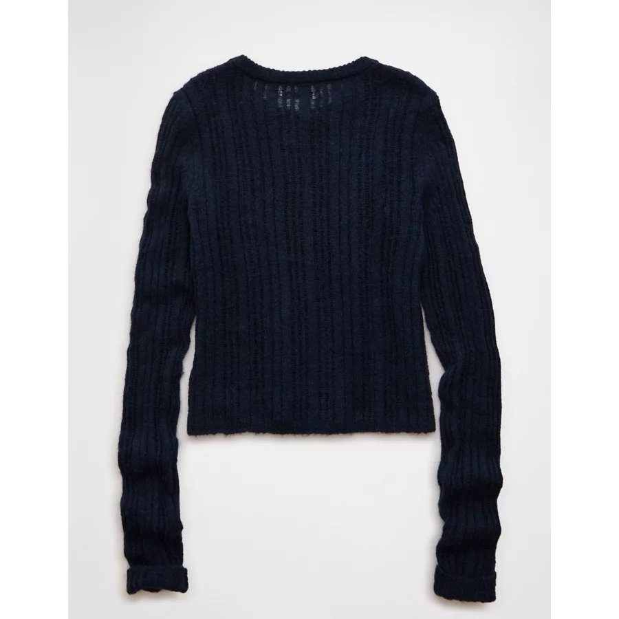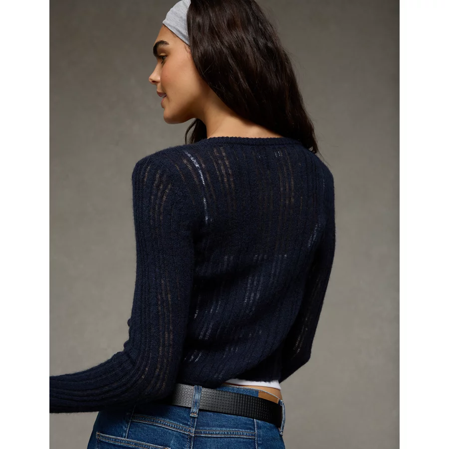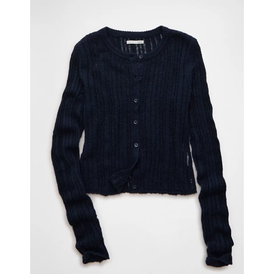 AE Fitted Crew Neck Cardigan – Navy
