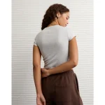 AE Georgia Bulldogs Graphic Cropped Baby Tee – Light Faded Gray