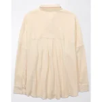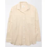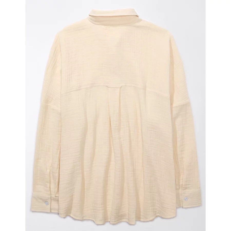 AE Go Big Linen-Blend Oversized Striped Shirt - Pink