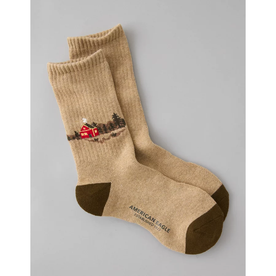 AE Graphic Terry Crew Socks - Light Heather Gray