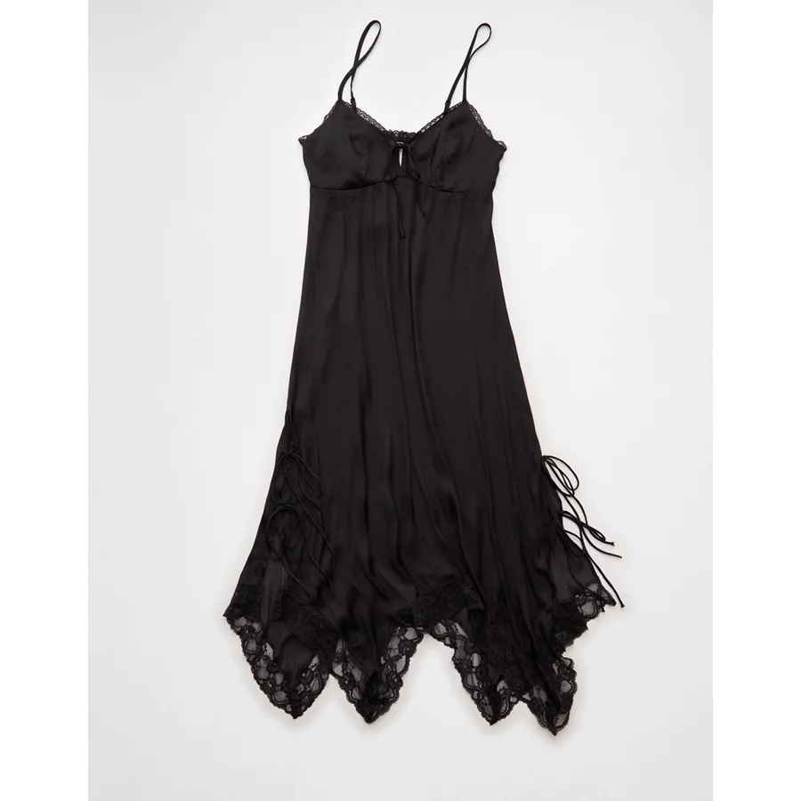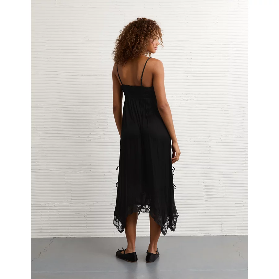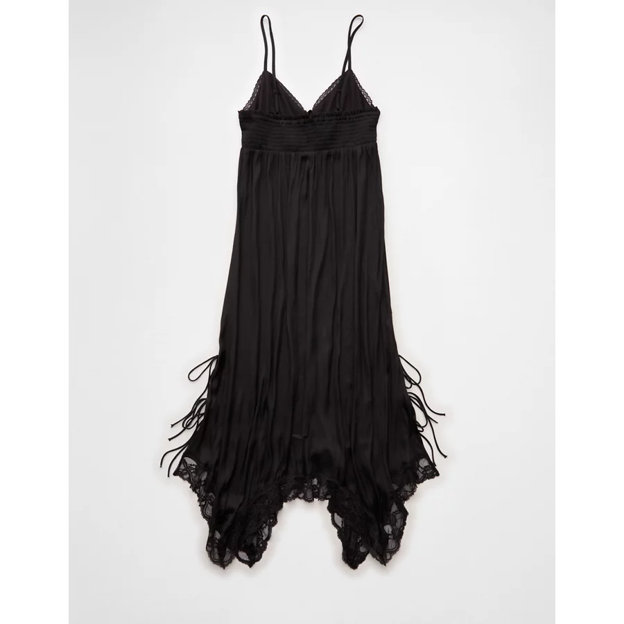AE Handkerchief Hem Tie Side Midi Slip Dress – Black