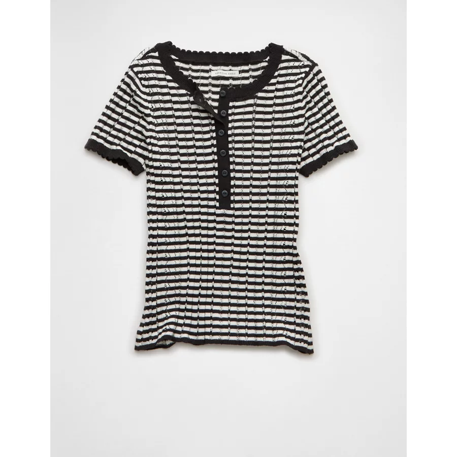 AE Henley Pointelle Sweater T-Shirt – Black Stripe