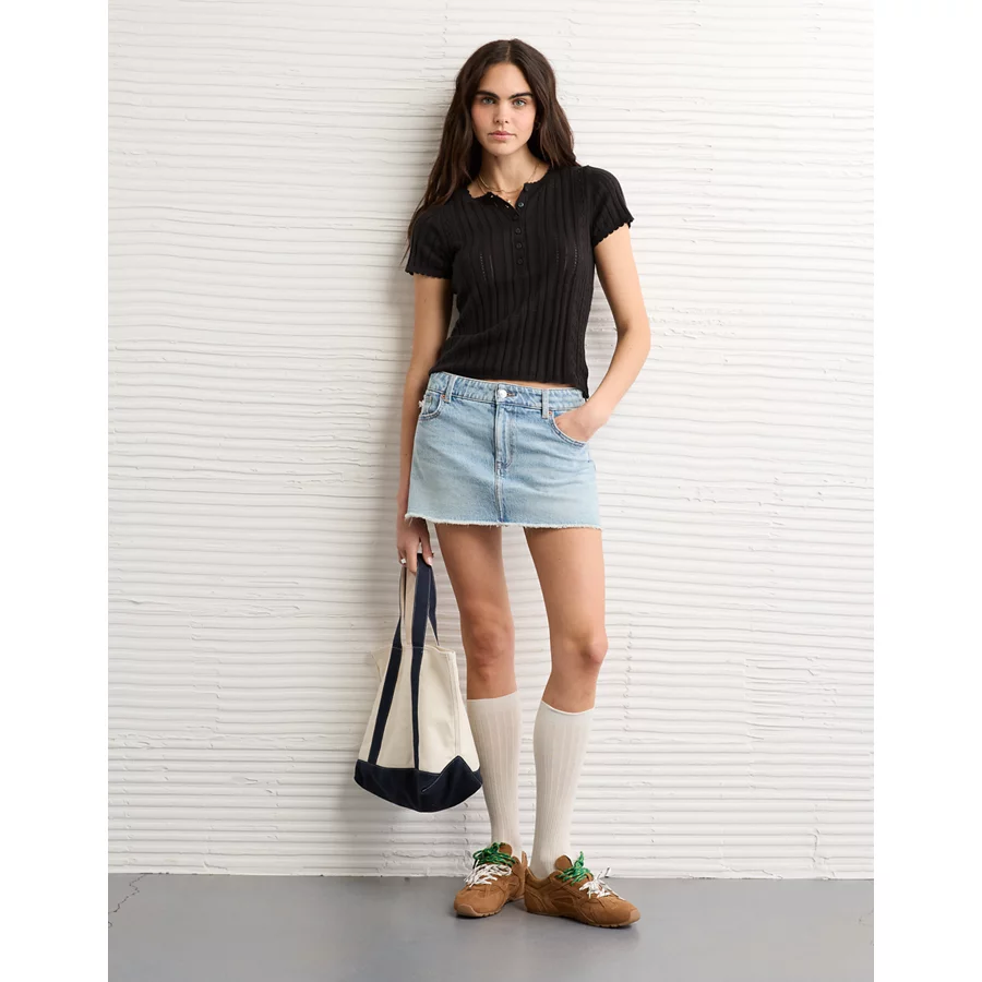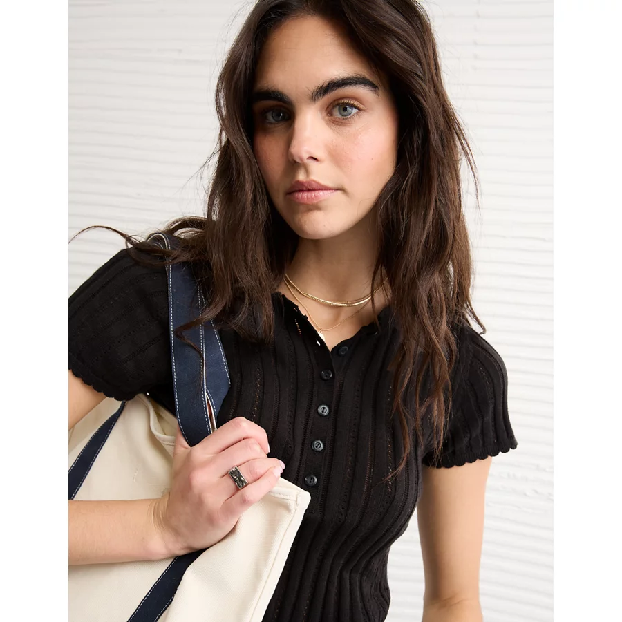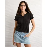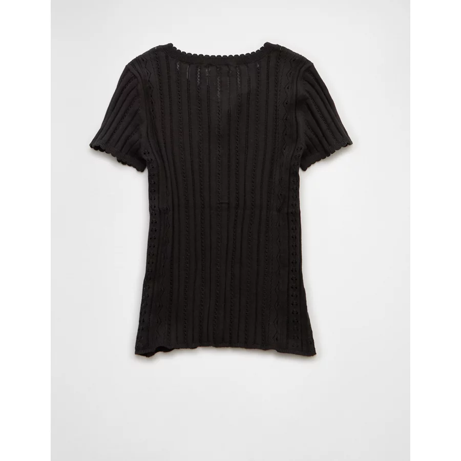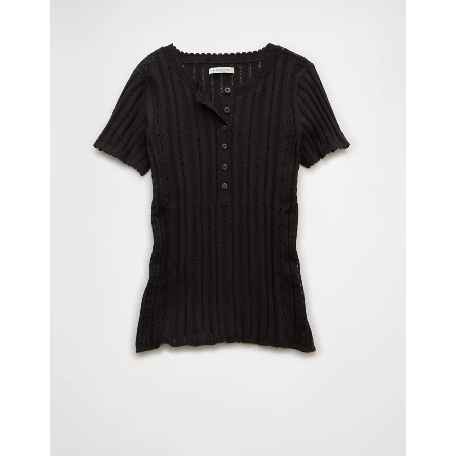 AE Henley Pointelle Sweater T-Shirt – Black
