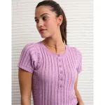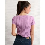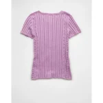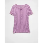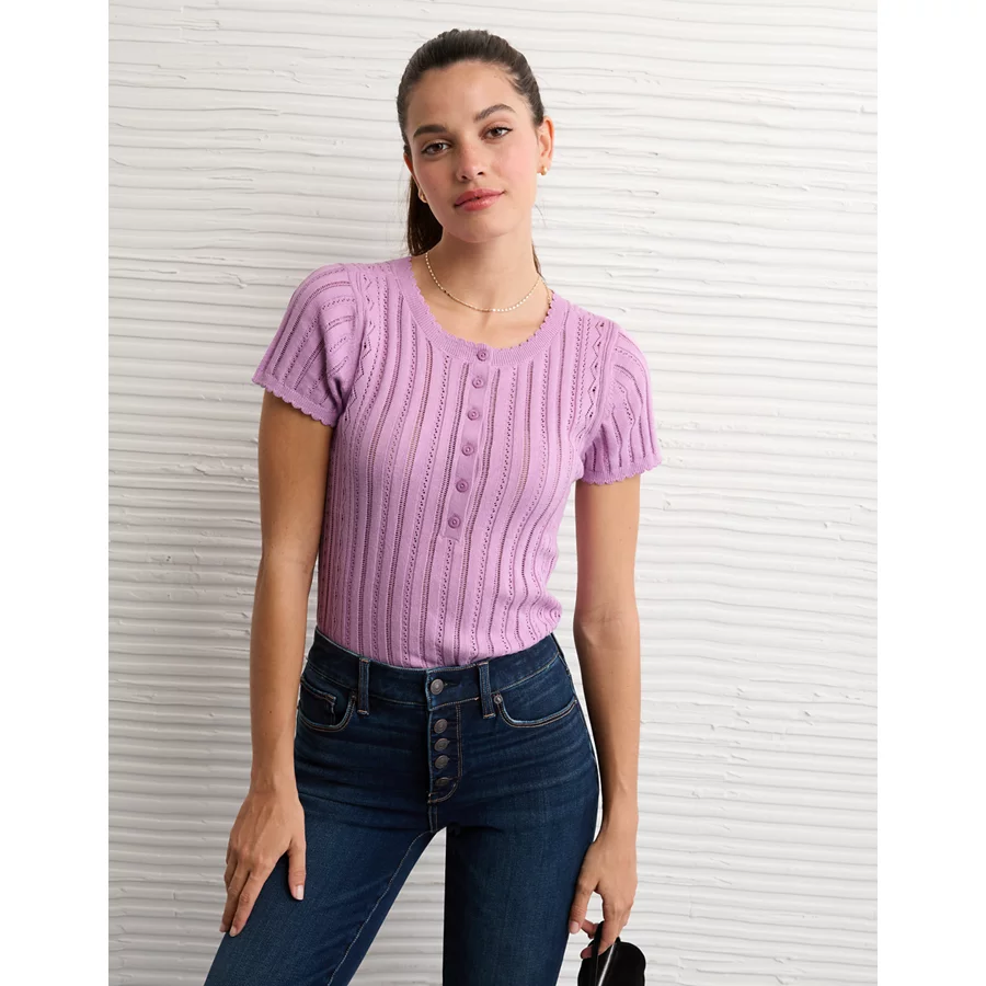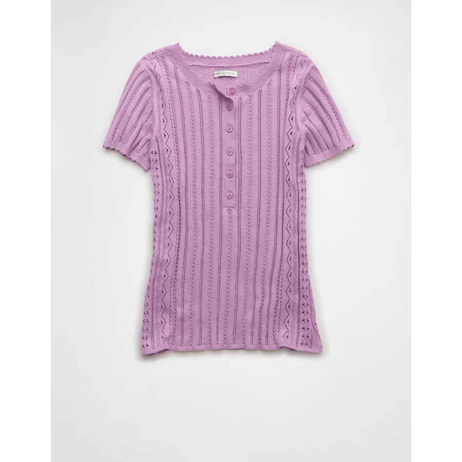 AE Henley Pointelle Sweater T-Shirt – Purple