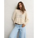 ABO Snoopy Skier Print Plush PJ Top – Blue