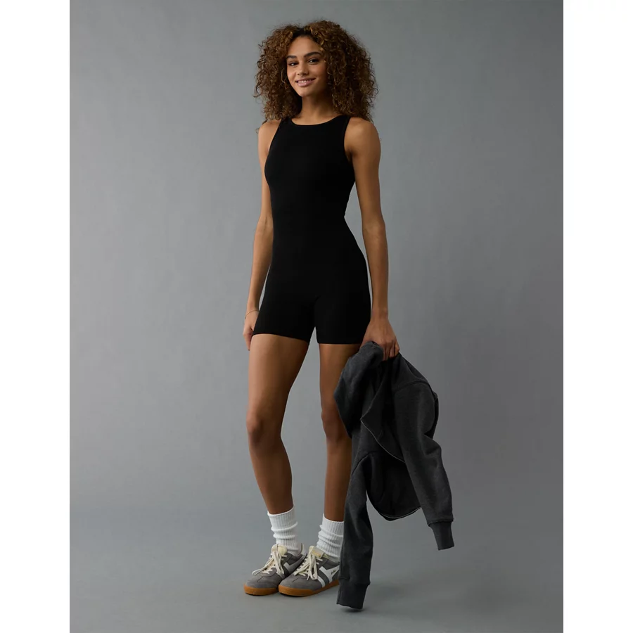 AE High Neck Seamless Lounge Romper – Black