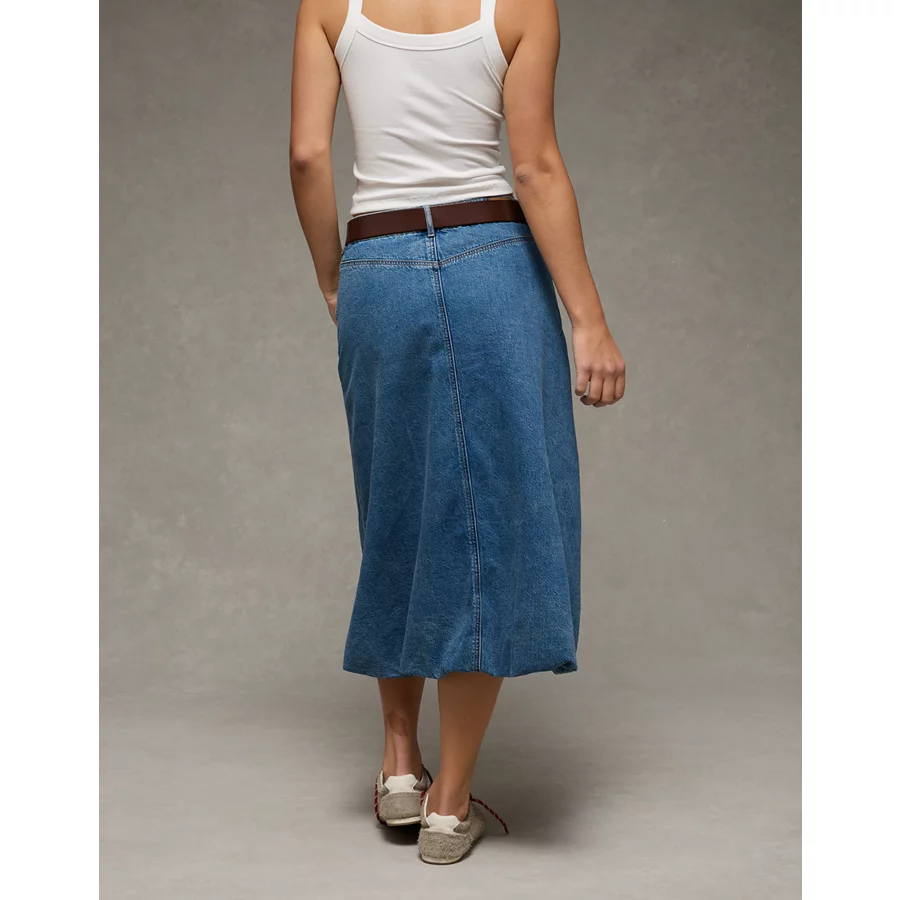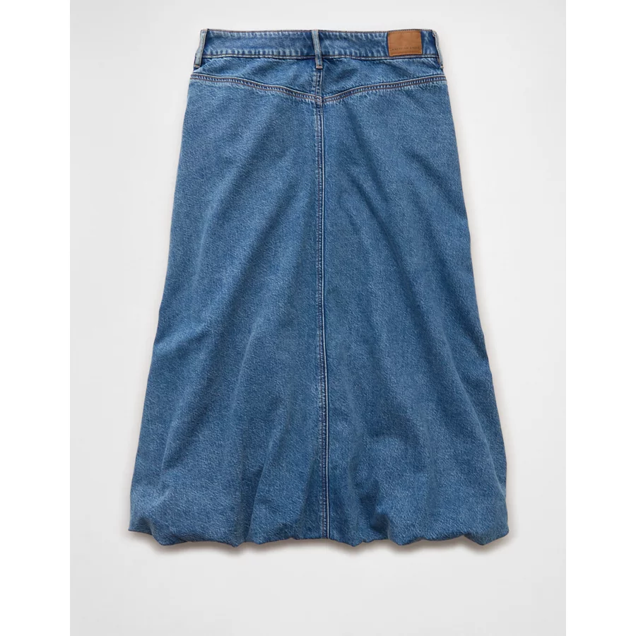 AE High-Waisted Bubble Midi Skirt – Medium Wash