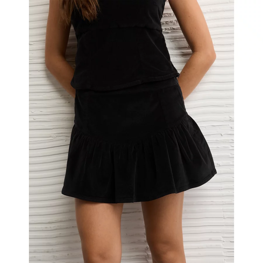 AE High-Waisted Drop-Waist Mini Skirt – Onyx Black