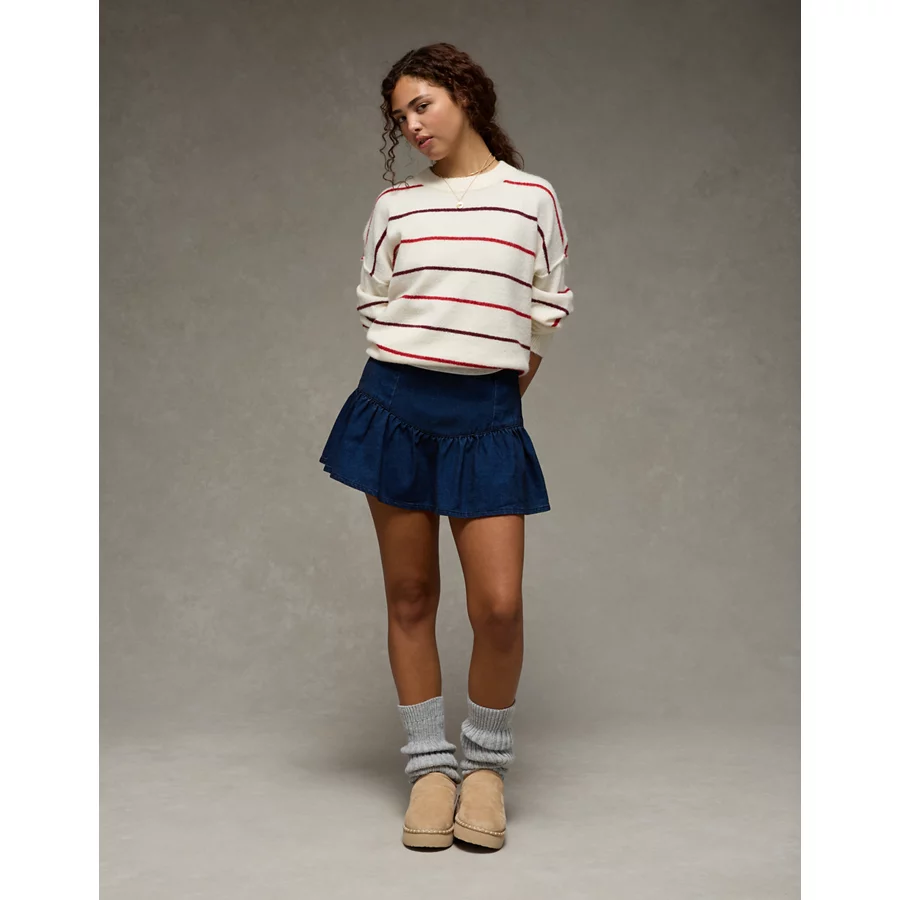AE High-Waisted Pleated Mini Skirt - Light Wash