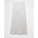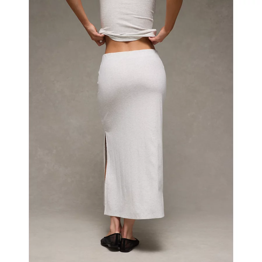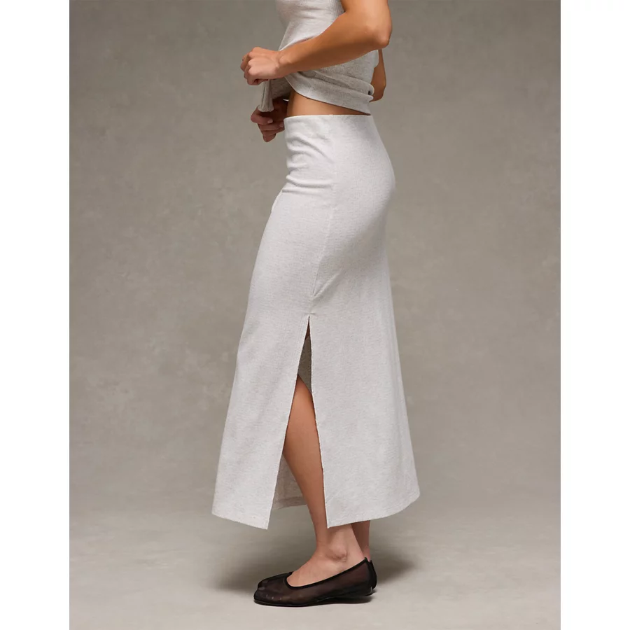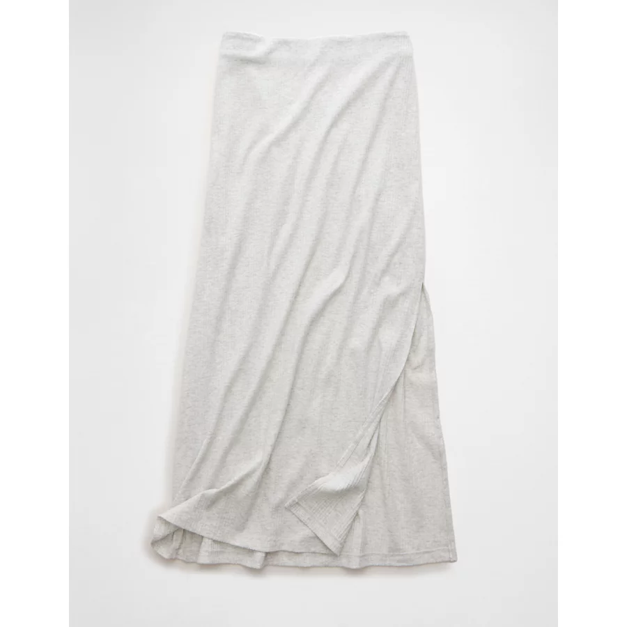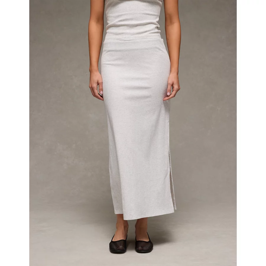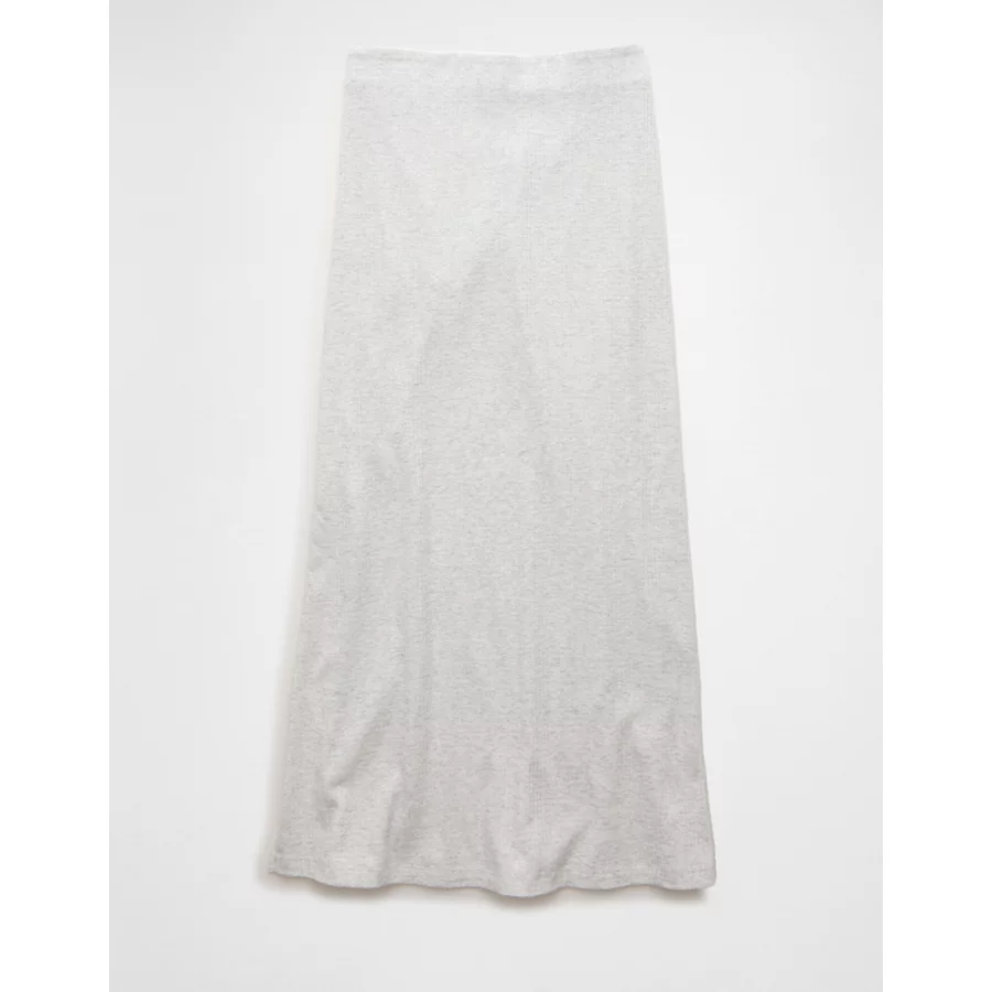 AE High-Waisted Ribbed Knit Maxi Skirt – Light Heather Gray