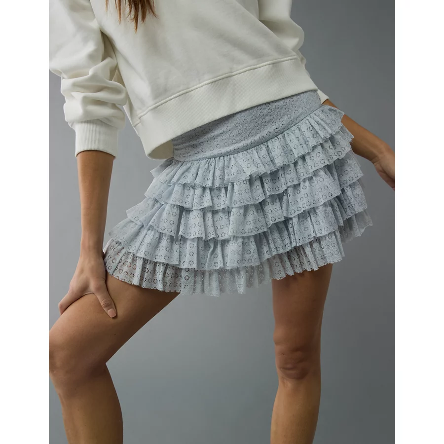 AE High-Waisted Ruffle Mini Skort – Light Blue