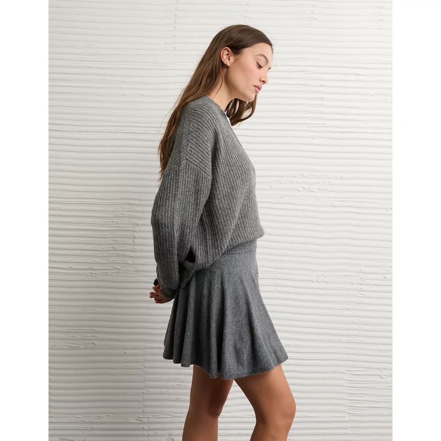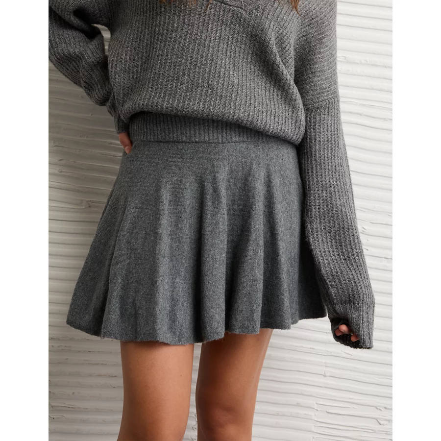 AE High-Waisted Sweater Mini Skort – Charcoal Heather Gray