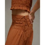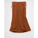 AE High-Waisted Tie Side Maxi Skirt – Amber Brown