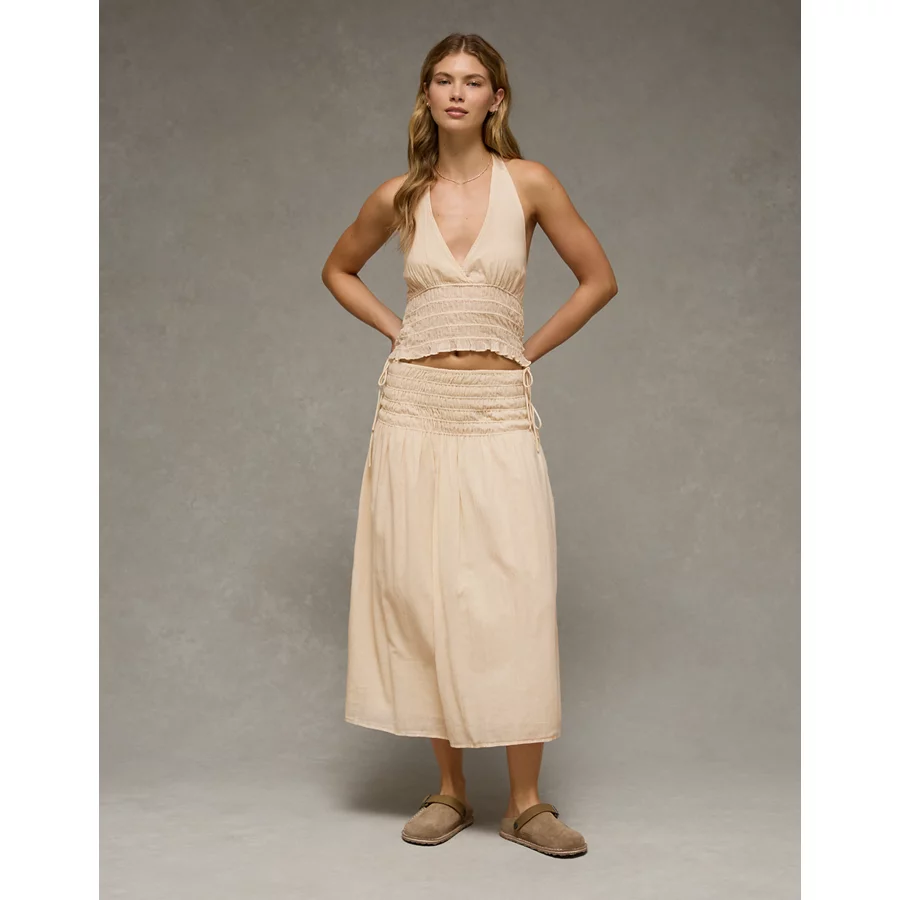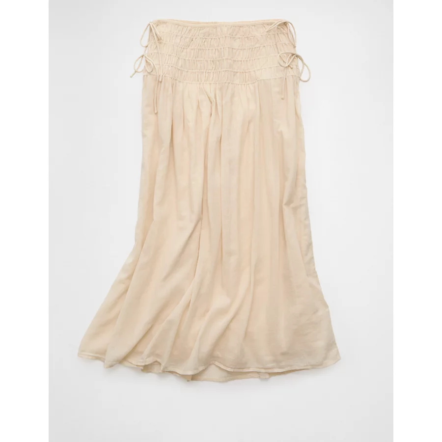 AE High-Waisted Tie Side Maxi Skirt – Cream