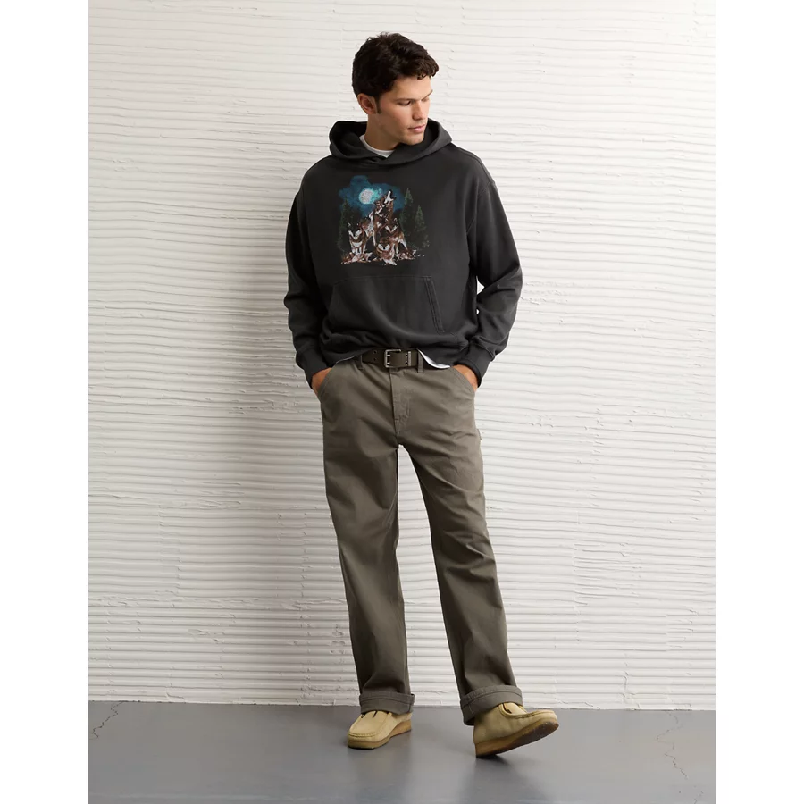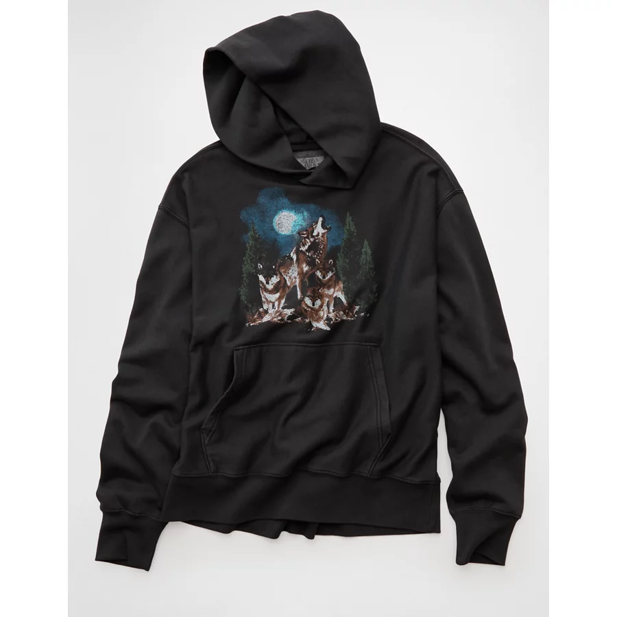AE Howling Wolves Graphic Hoodie – Washed Black