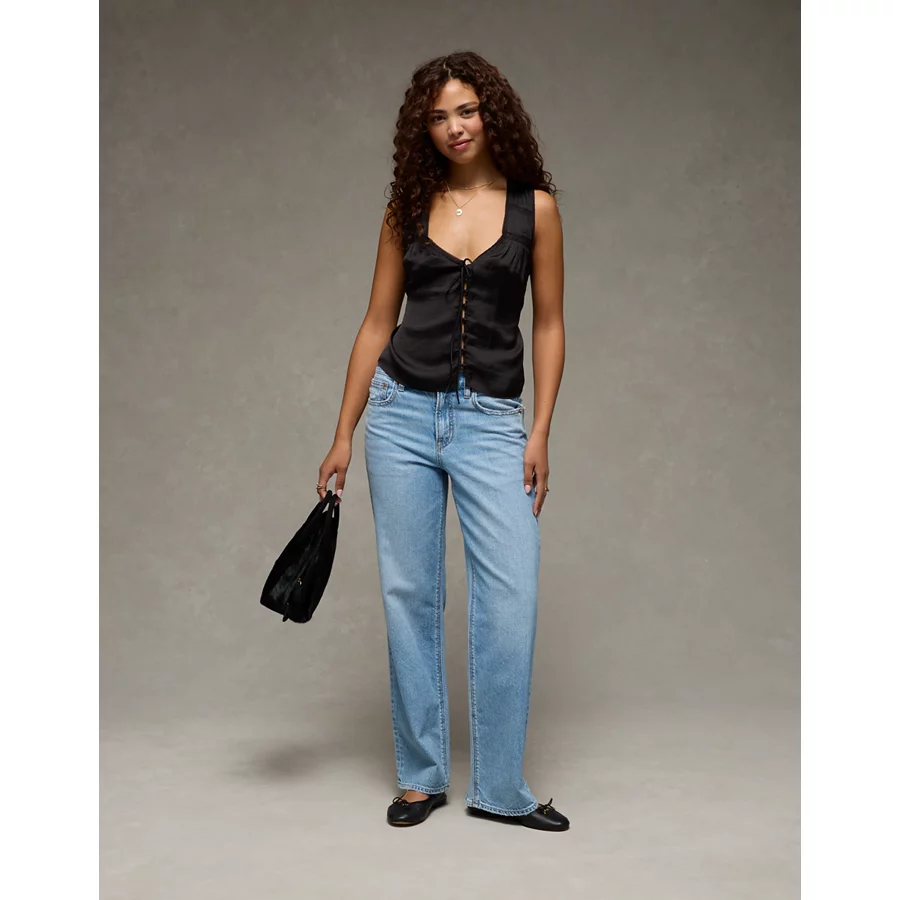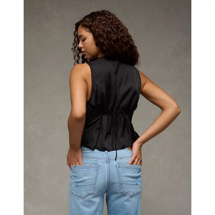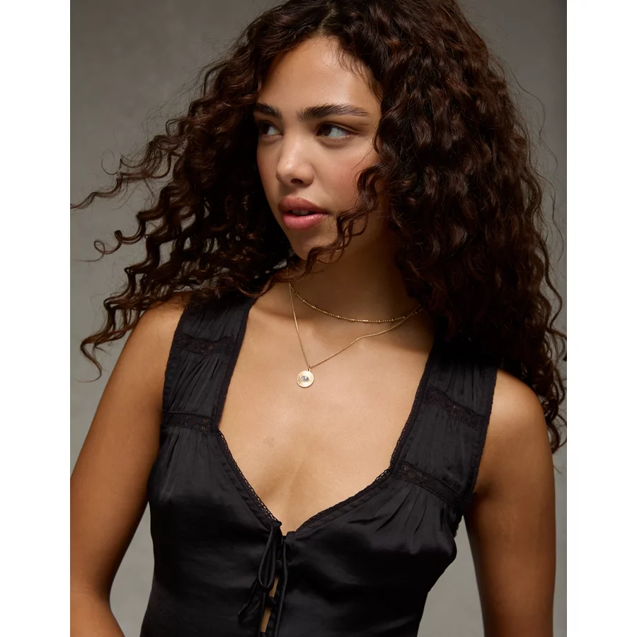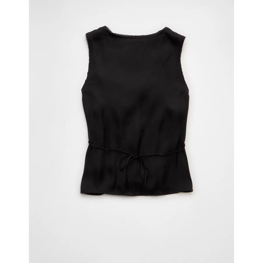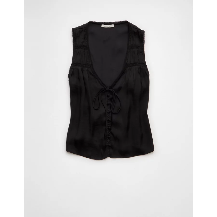 AE Lace Button-Front Tank Top – Black