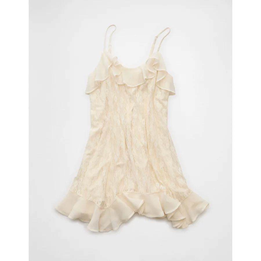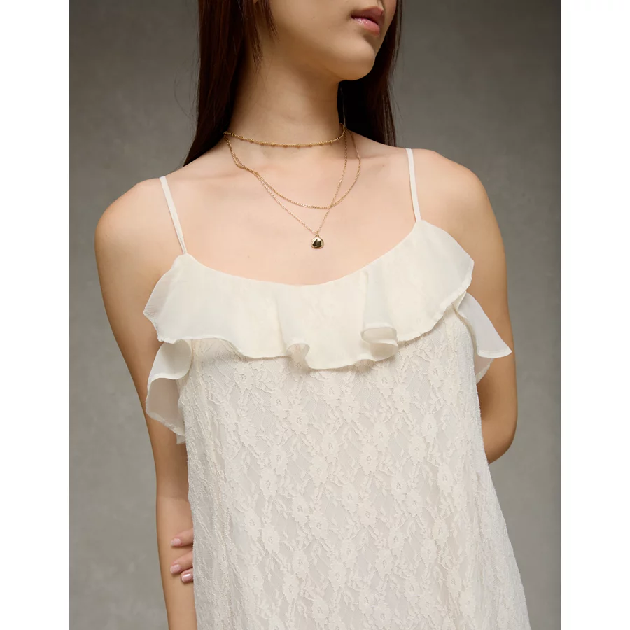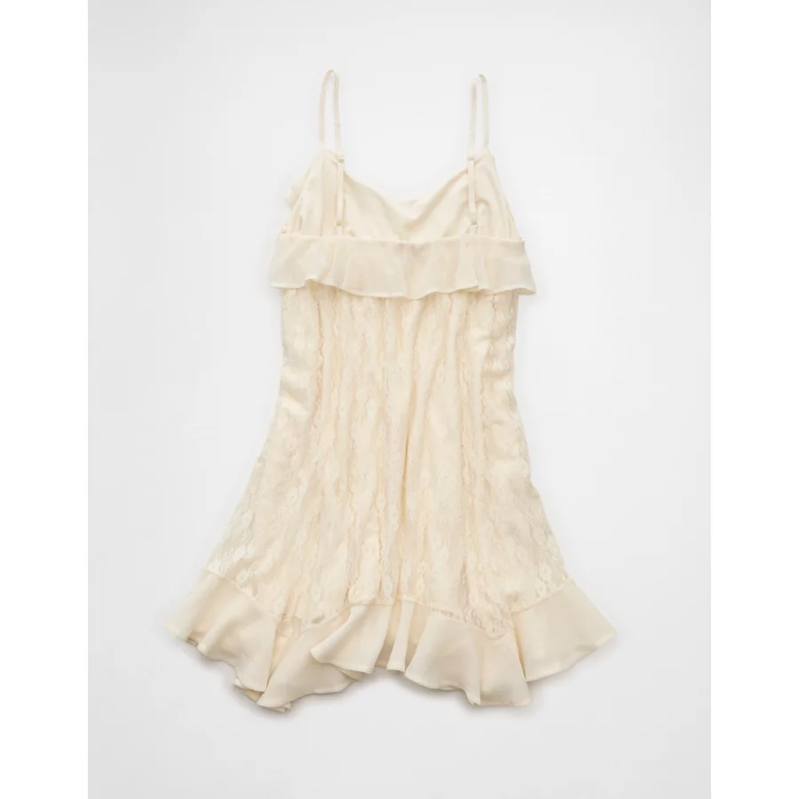 AE Lace Handkerchief Hem Ruffle Mini Dress – Cream