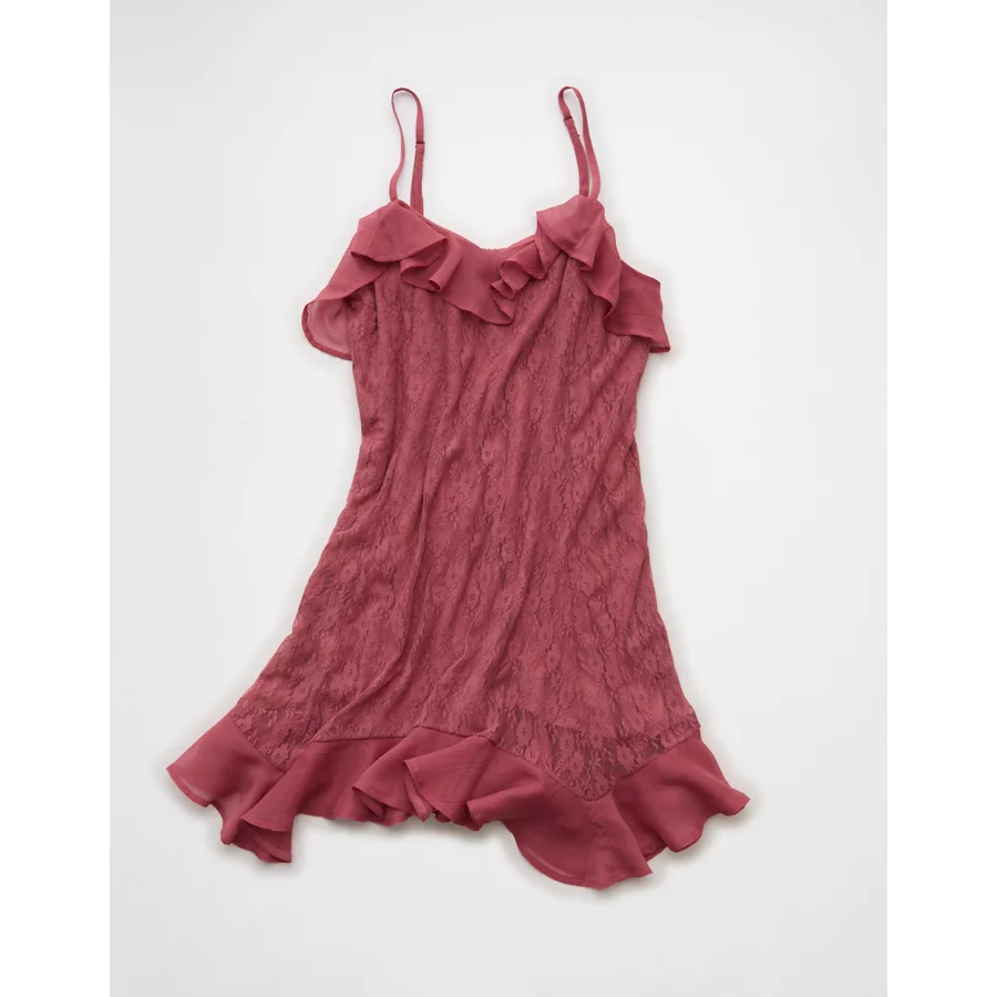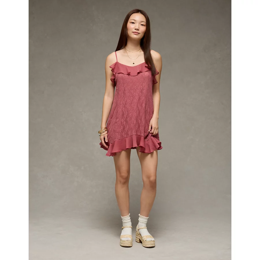 AE Lace Handkerchief Hem Ruffle Mini Dress – Mauve