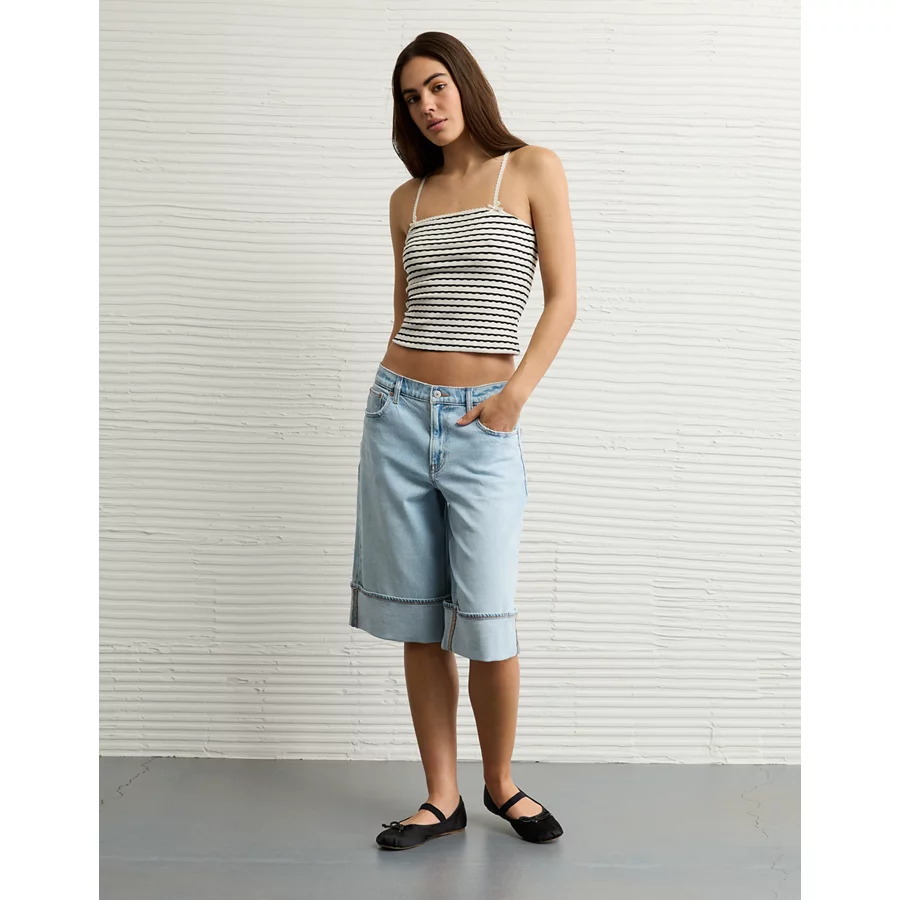 AE 11″ Dreamy Drape Stretch High-Waisted Jort – Light Tinted Wash
