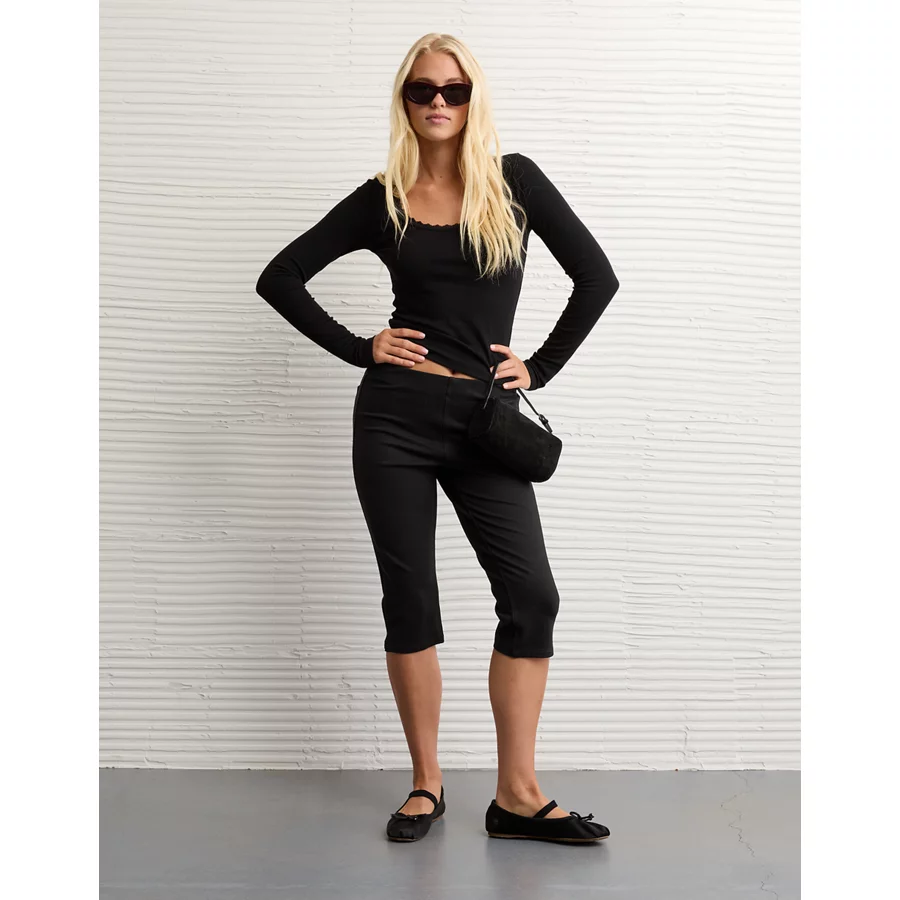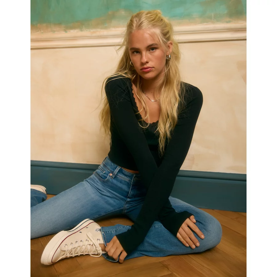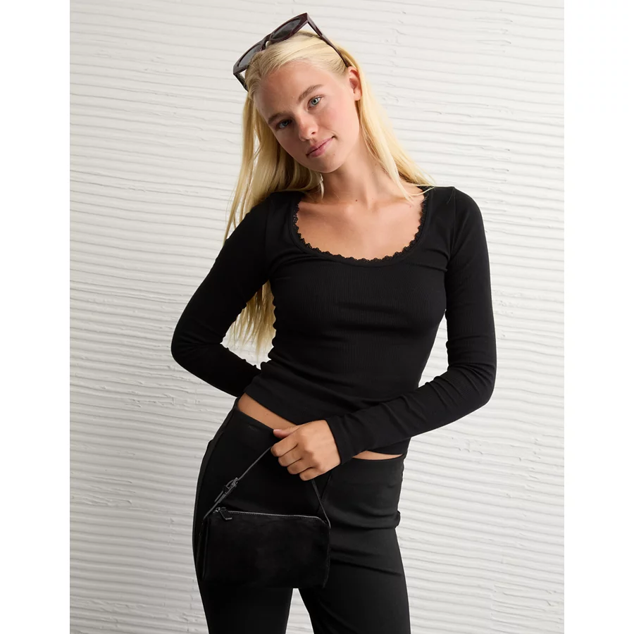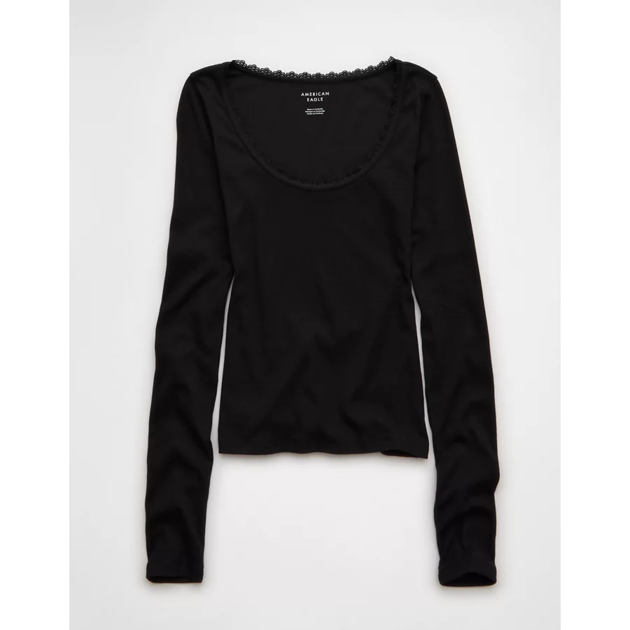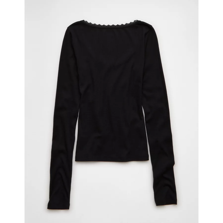AE Lace-Trim Long Sleeve T-Shirt – Black