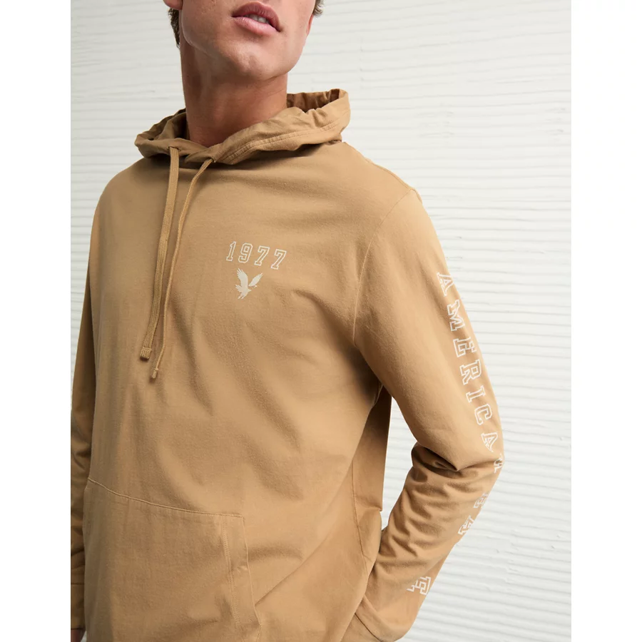 AE Lightweight Icon Logo Graphic Hoodie T-Shirt – Khaki