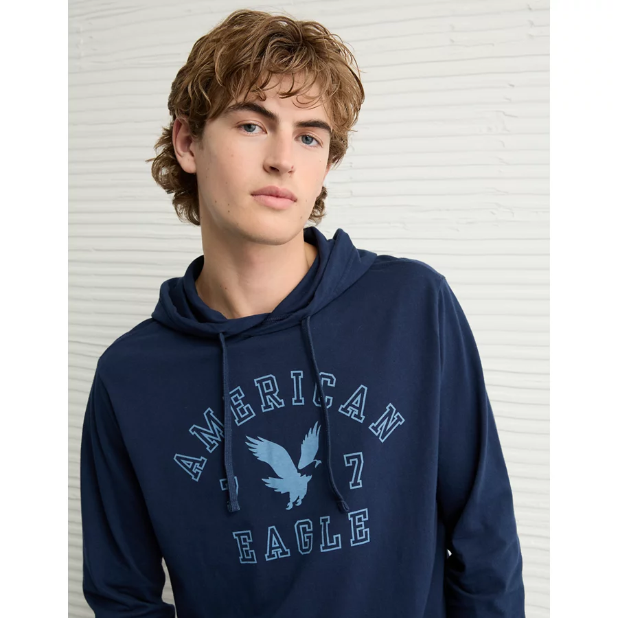 AE Lightweight Icon Logo Graphic Hoodie T-Shirt – Rich Navy