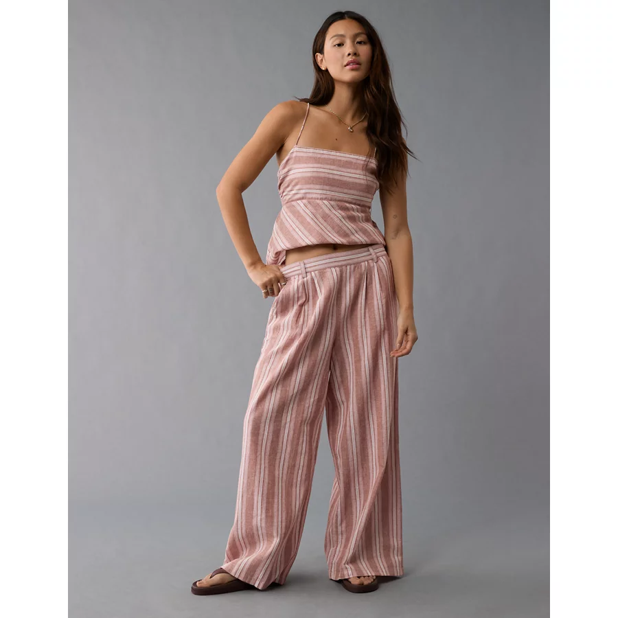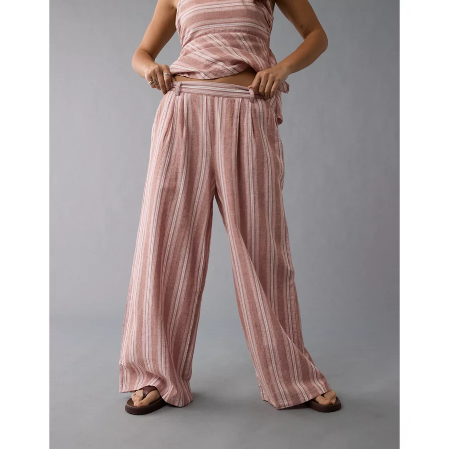 AE Linen-Blend High-Waisted Wide-Leg Pant – Pink