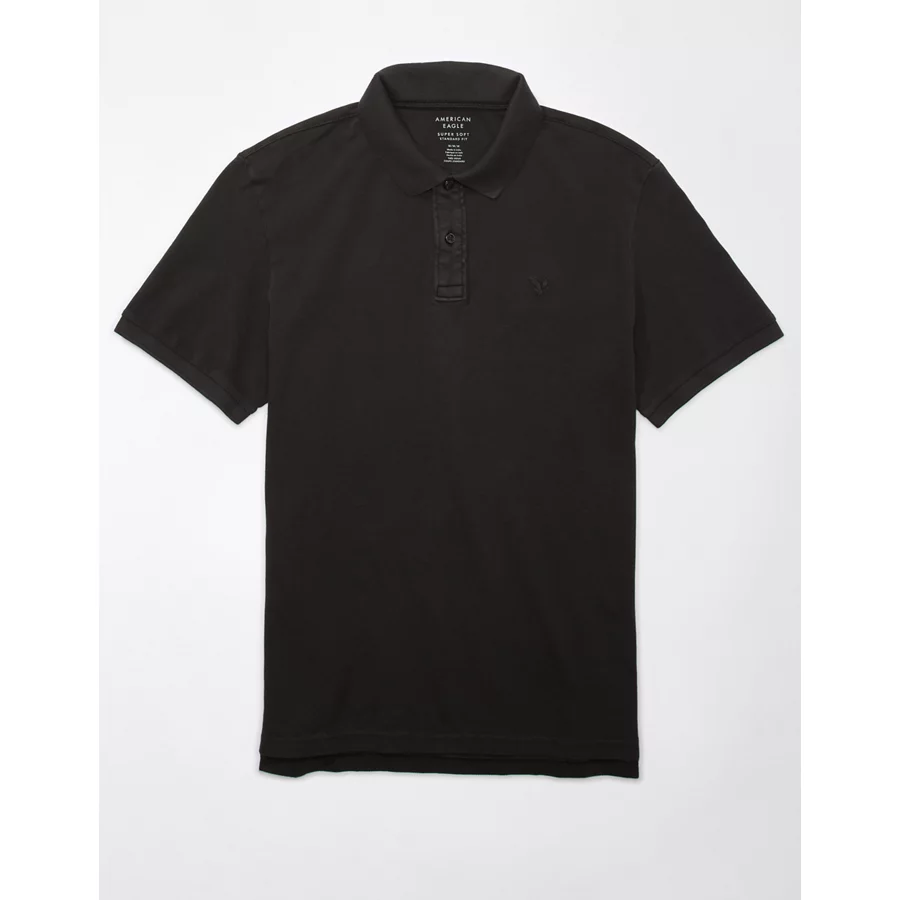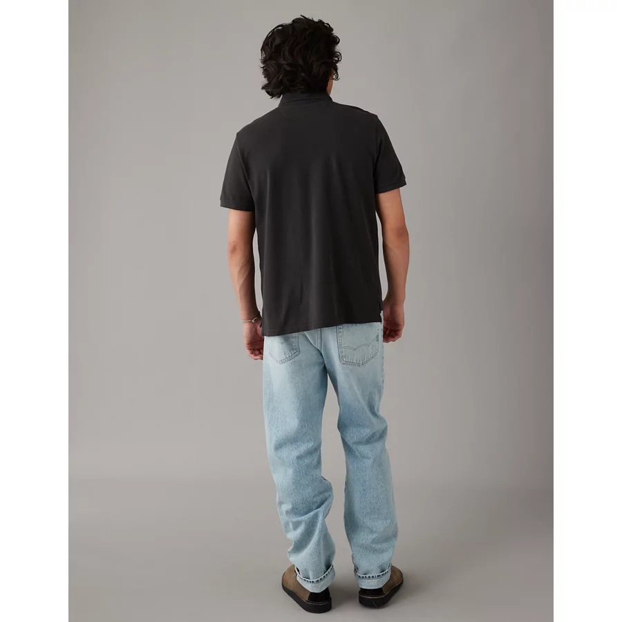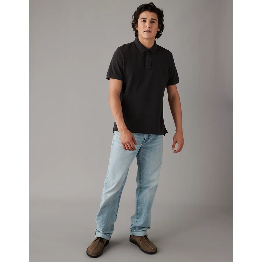 AE Lived-In Slim Fit Pique Polo Shirt - Charcoal