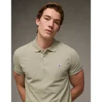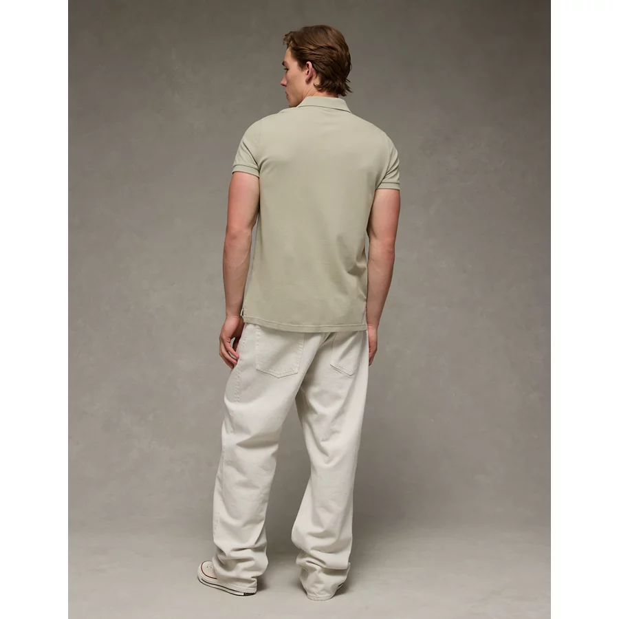 AE Lived-In Slim Fit Pique Polo Shirt - Khaki