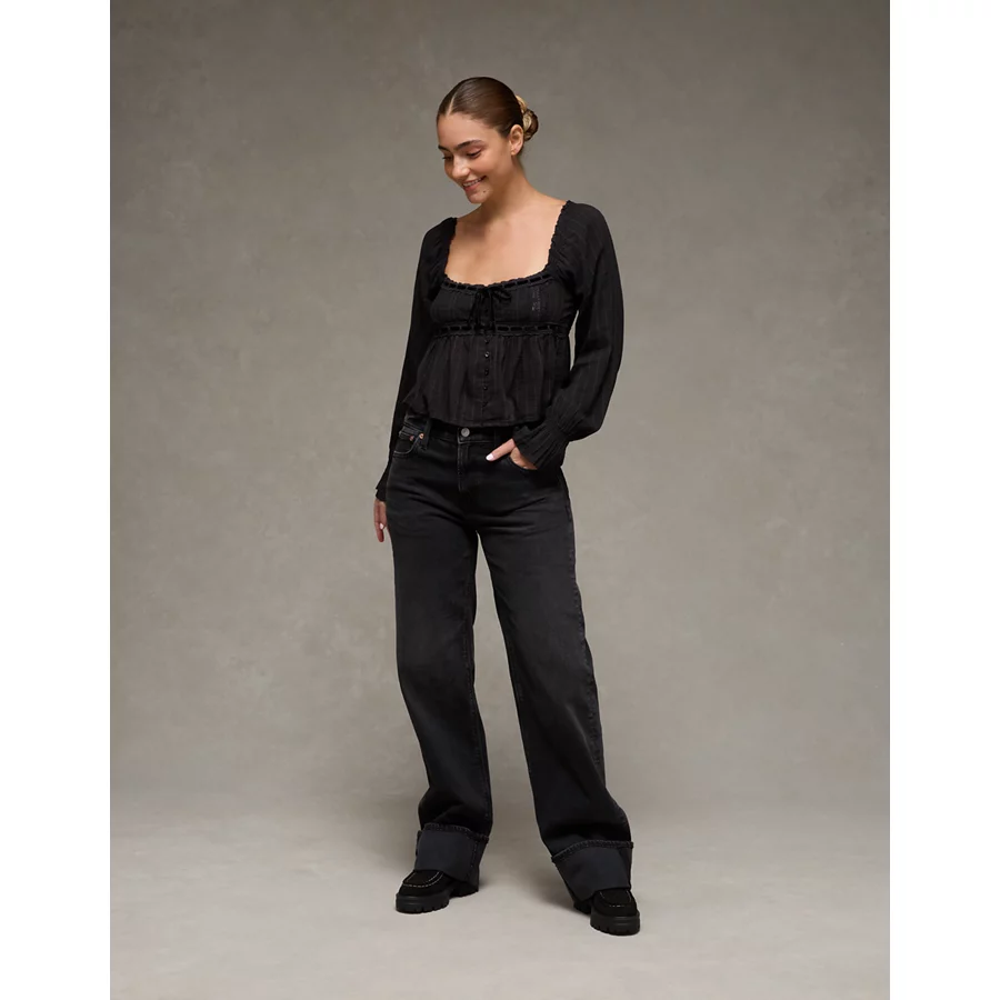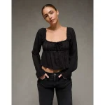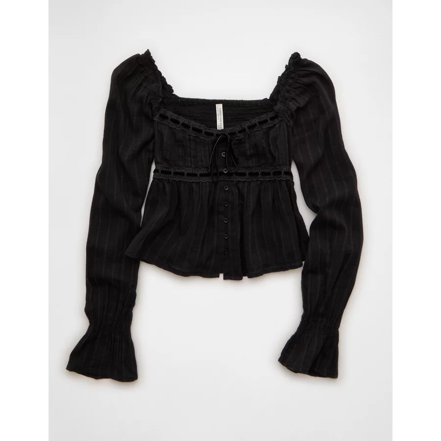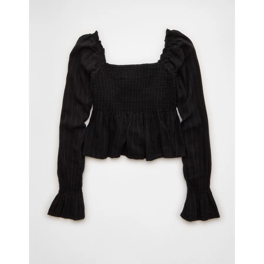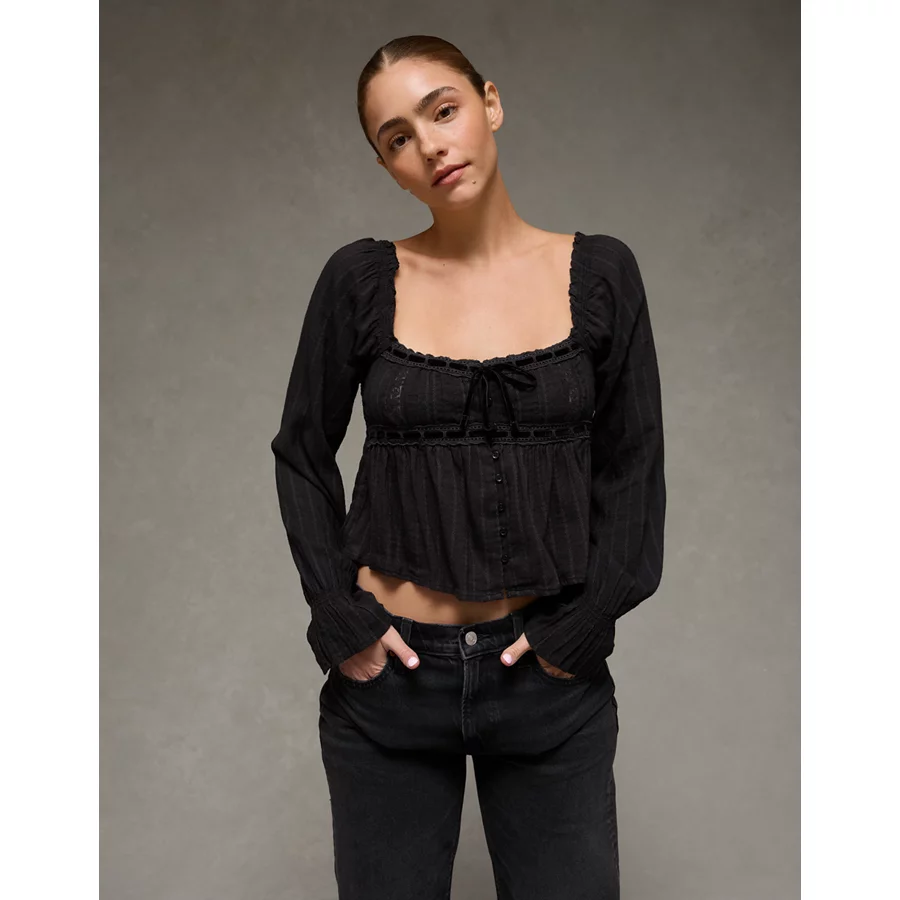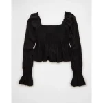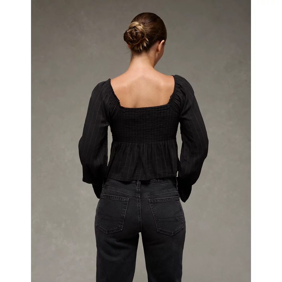 AE Long Sleeve Babydoll Blouse – Black