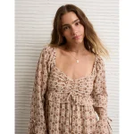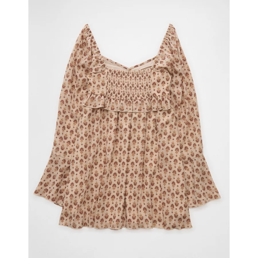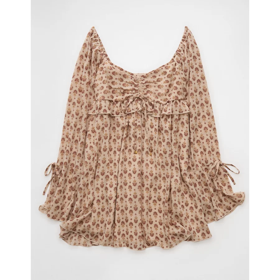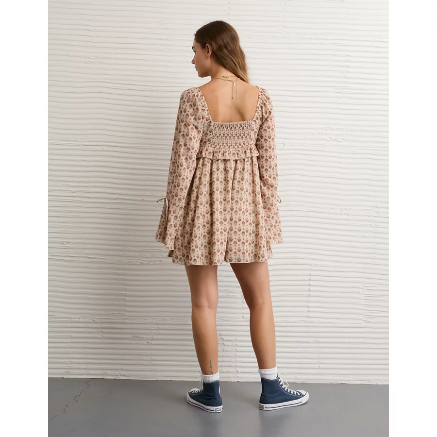 AE Long Sleeve Babydoll Mini Dress – Cream