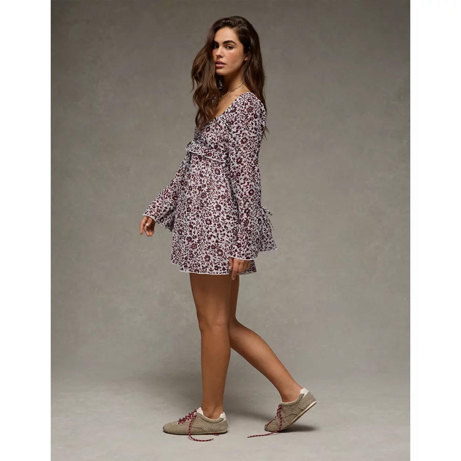 AE Long Sleeve Babydoll Mini Dress – Purple