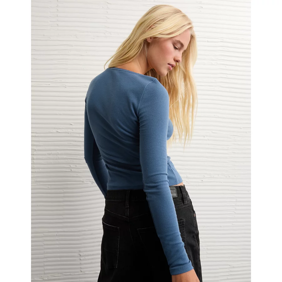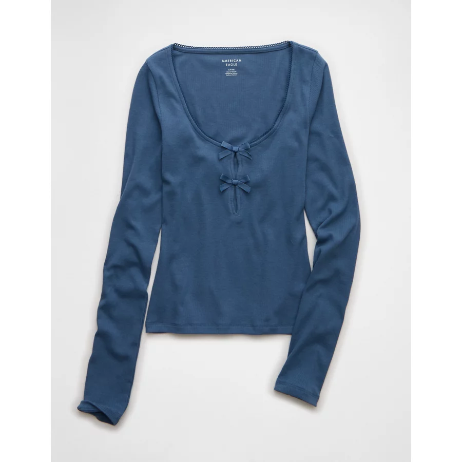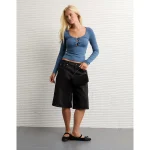 AE 8″ Dreamy Drape Stretch Low-Rise Baggy Jort – Medium Bright Indigo