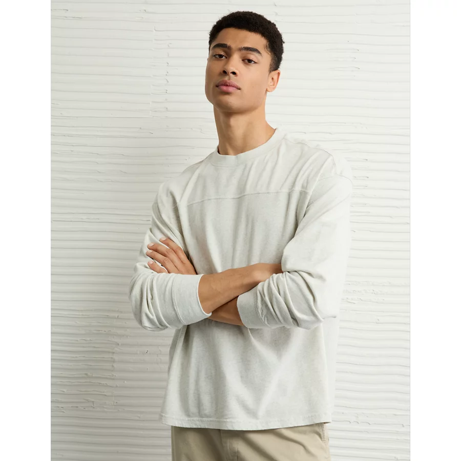 AE Long-Sleeve Boxy Sueded Jersey T-Shirt - Cream