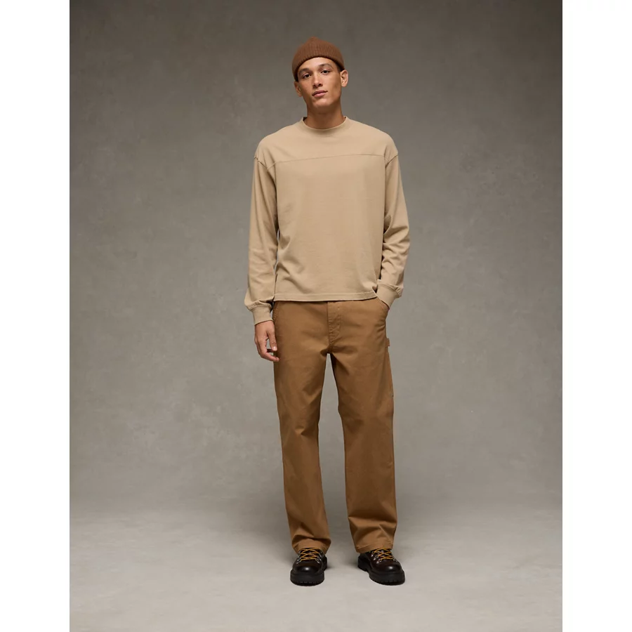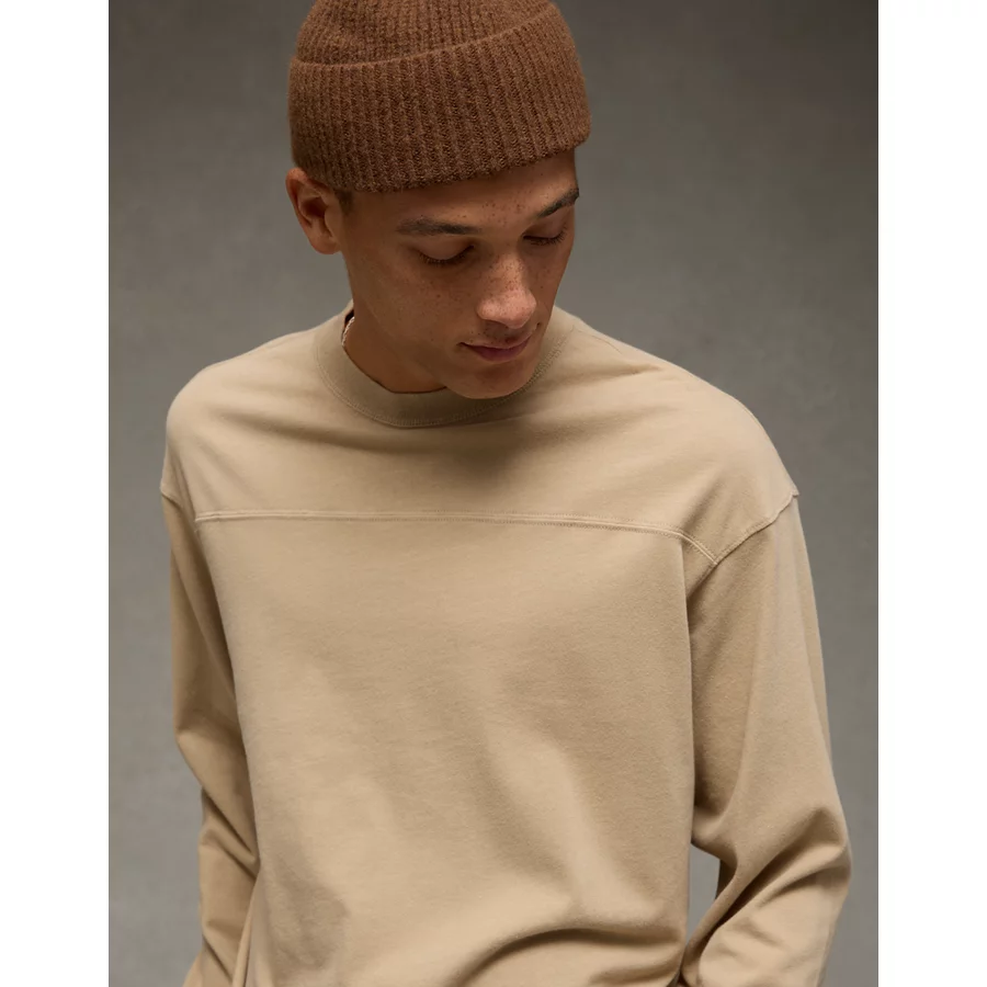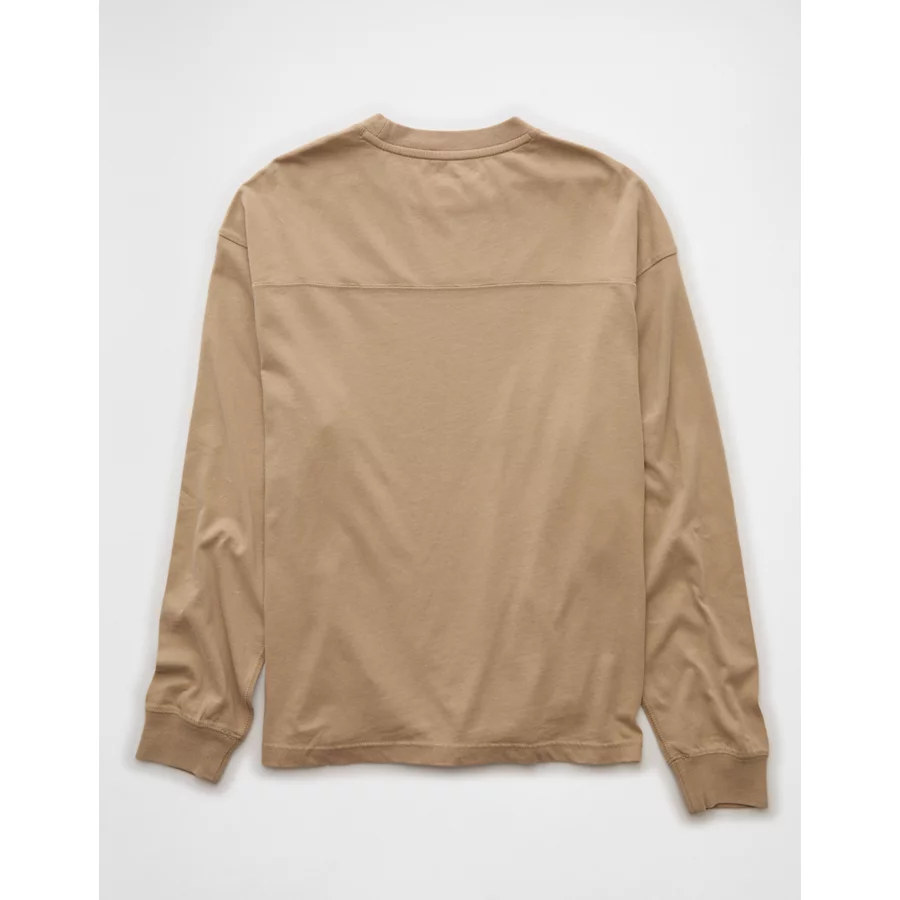 AE Long-Sleeve Boxy Sueded Jersey T-Shirt – Khaki