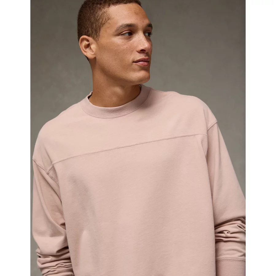 AE Long-Sleeve Boxy Sueded Jersey T-Shirt – Pink