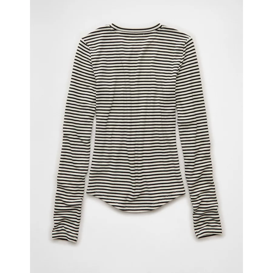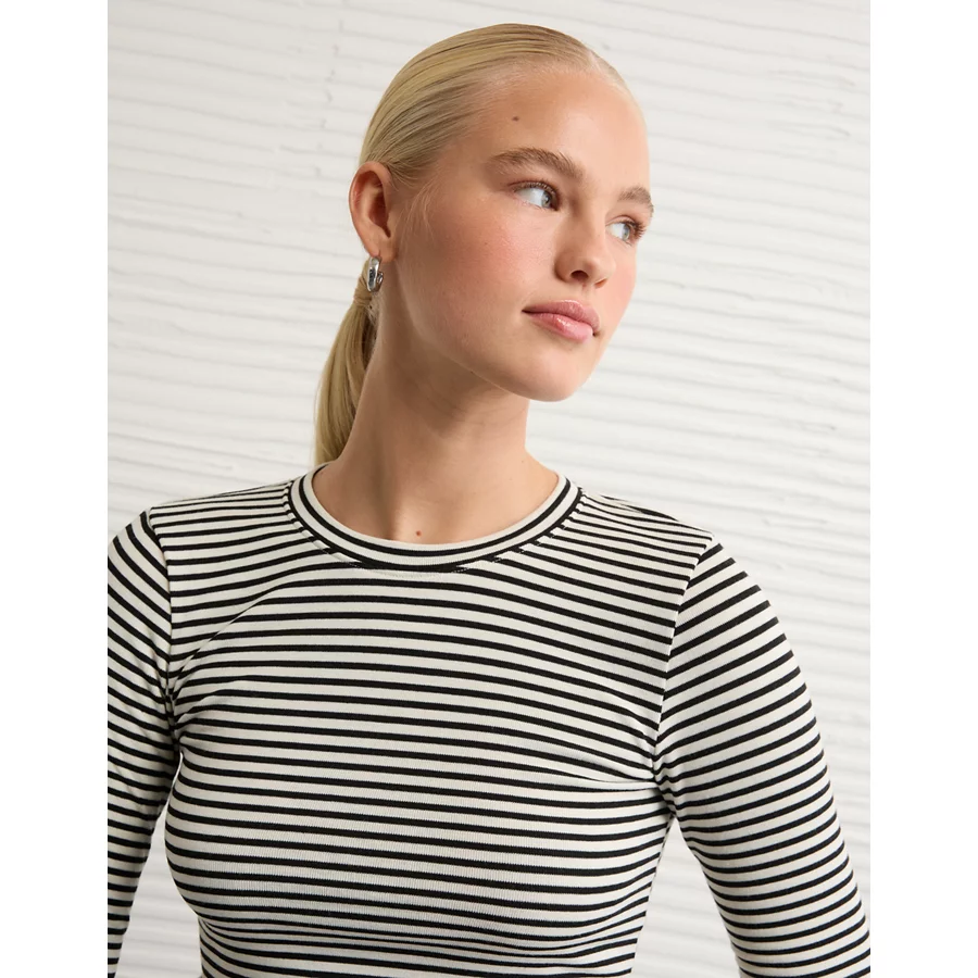 AE Long Sleeve Cozy Crew Neck T-Shirt – Black Stripe