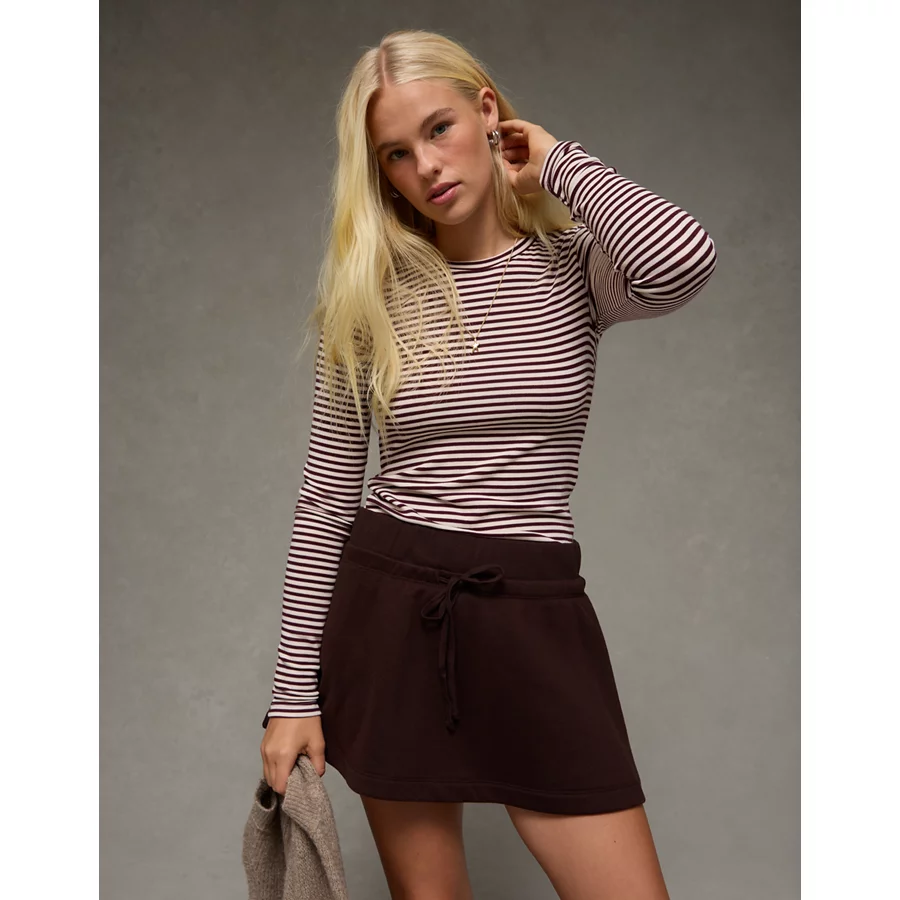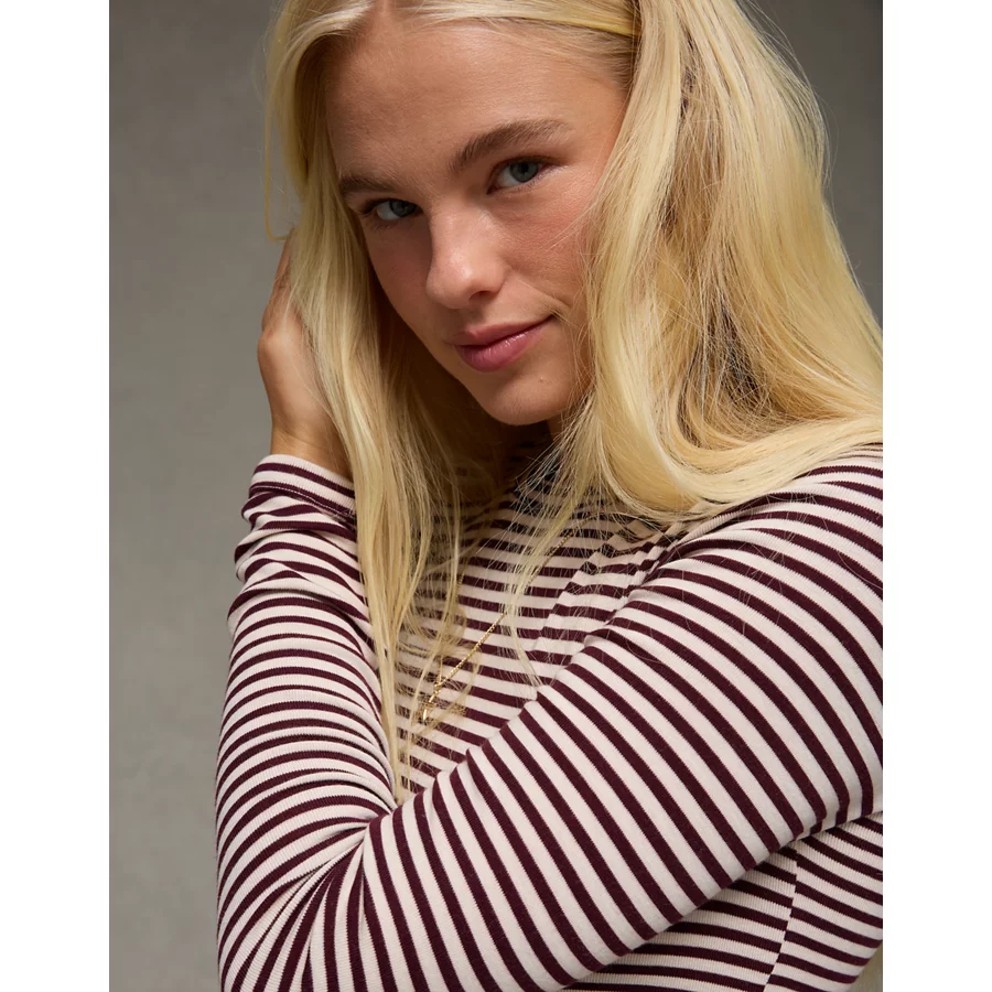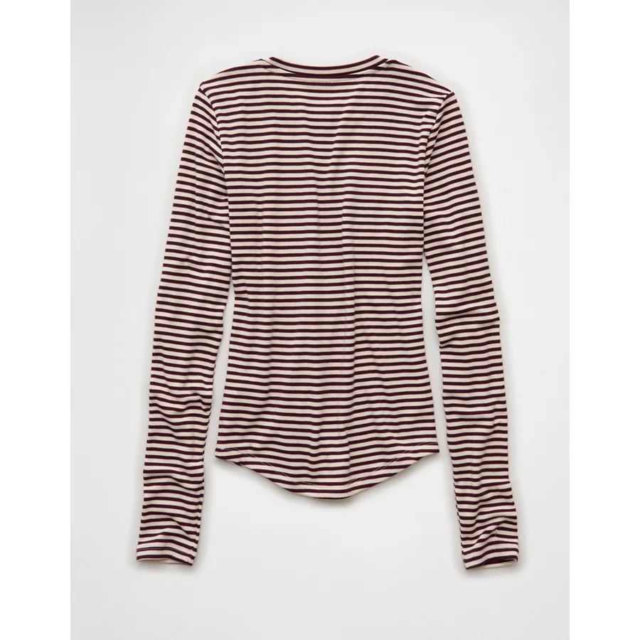 AE Long Sleeve Cozy Crew Neck T-Shirt – Burgundy