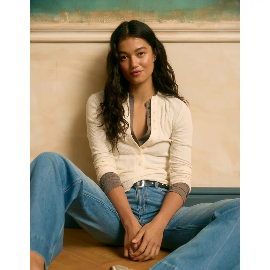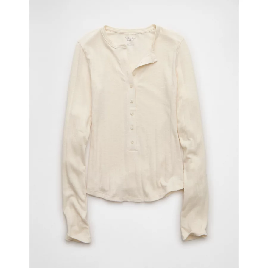 AE Long Sleeve Henley T-Shirt – Cream