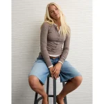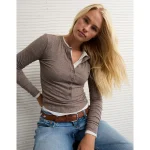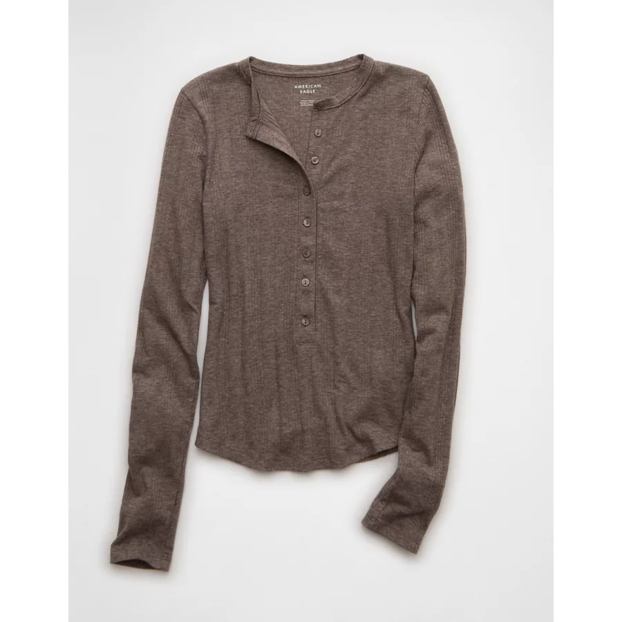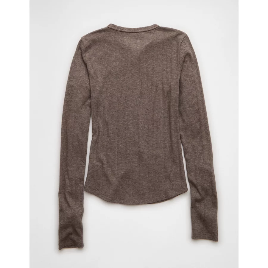 AE Long Sleeve Henley T-Shirt – Dark Brown