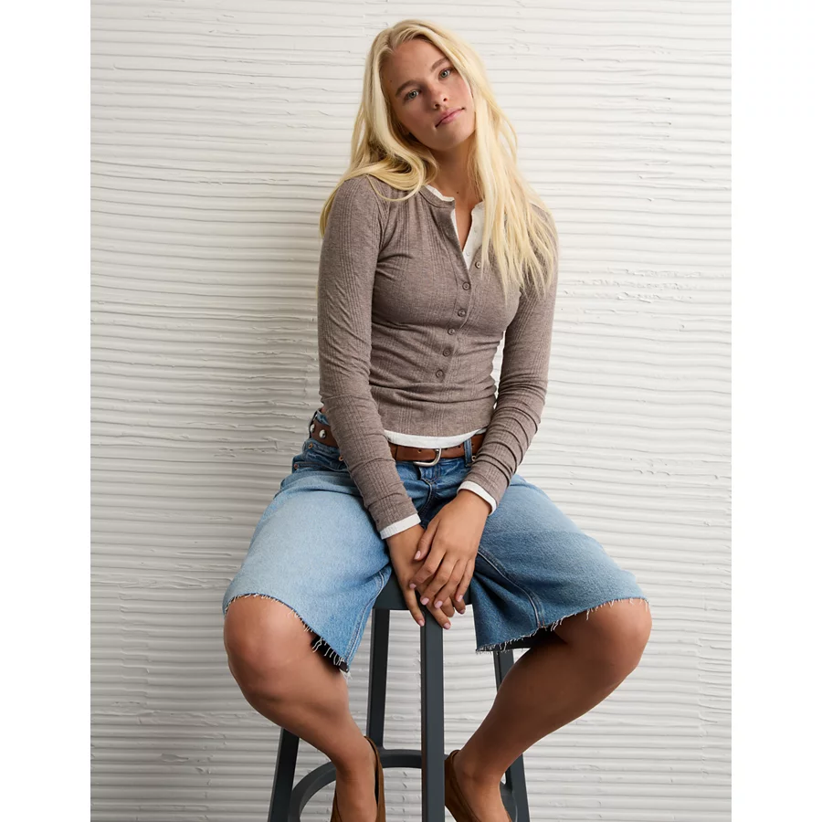 AE Long Sleeve Henley T-Shirt - Oatmeal