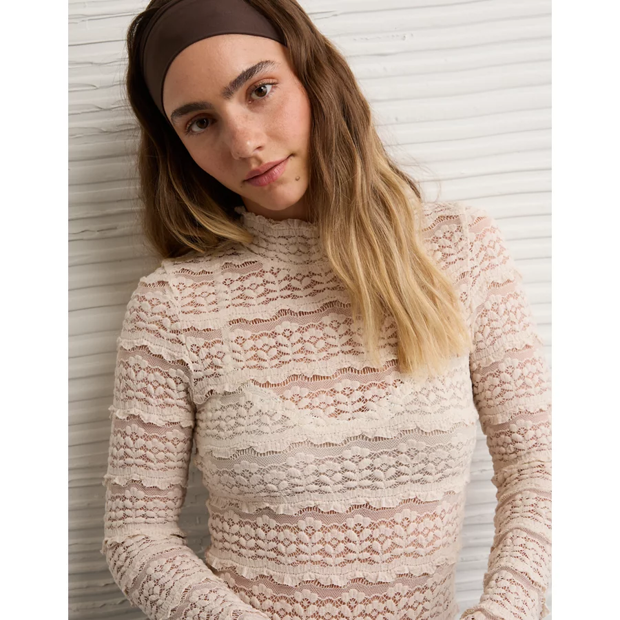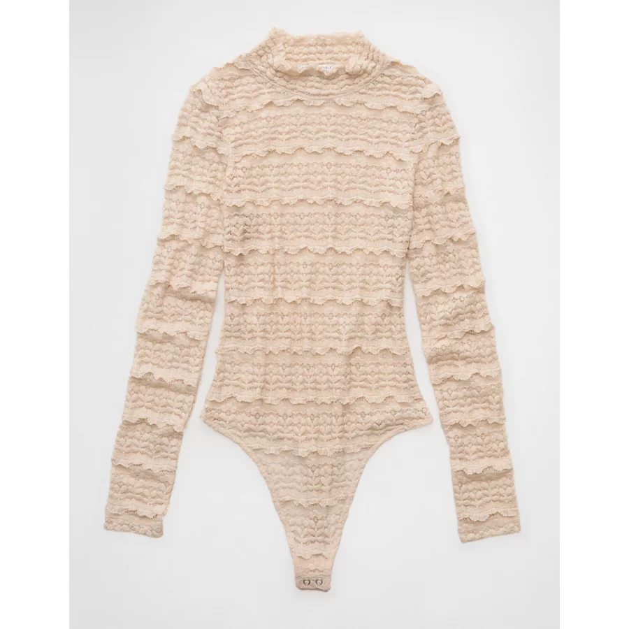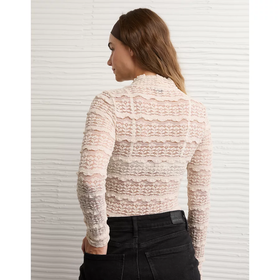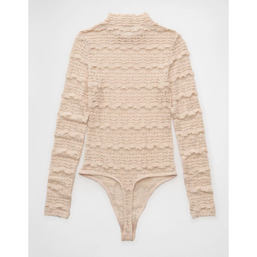 AE Long Sleeve Mock Neck Lace Bodysuit – Ballet Pink