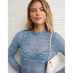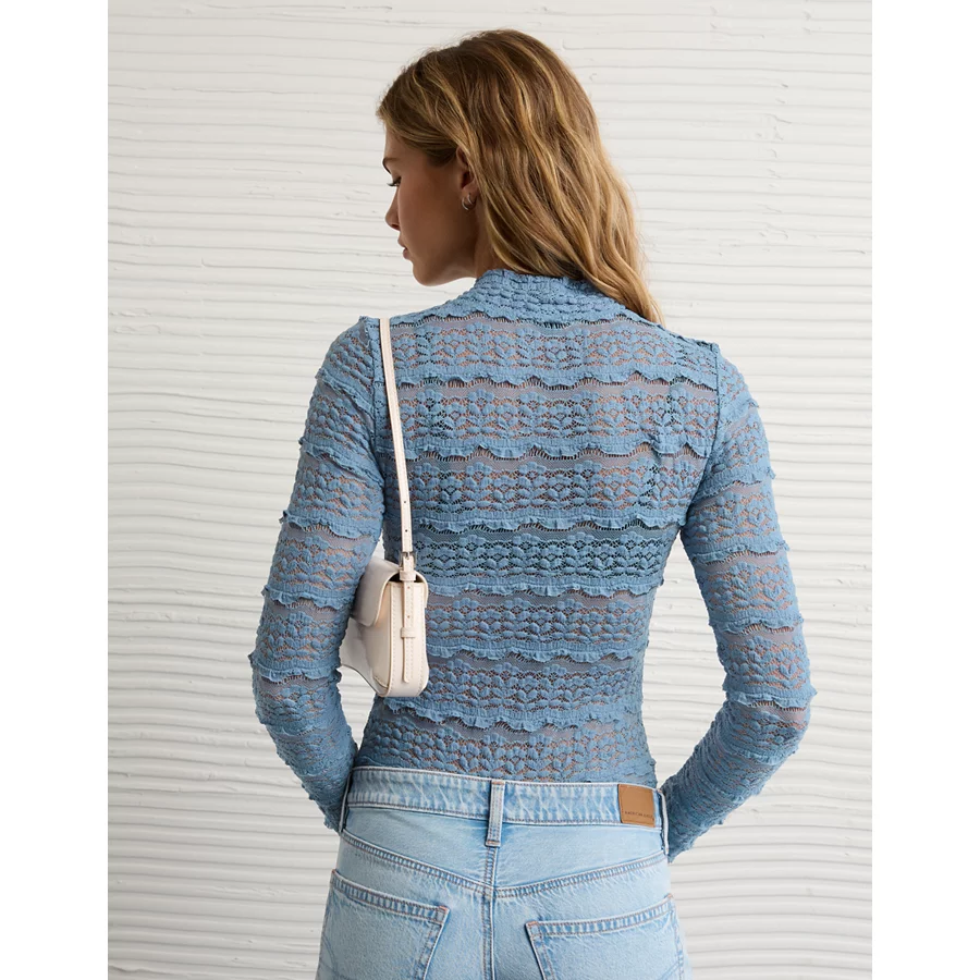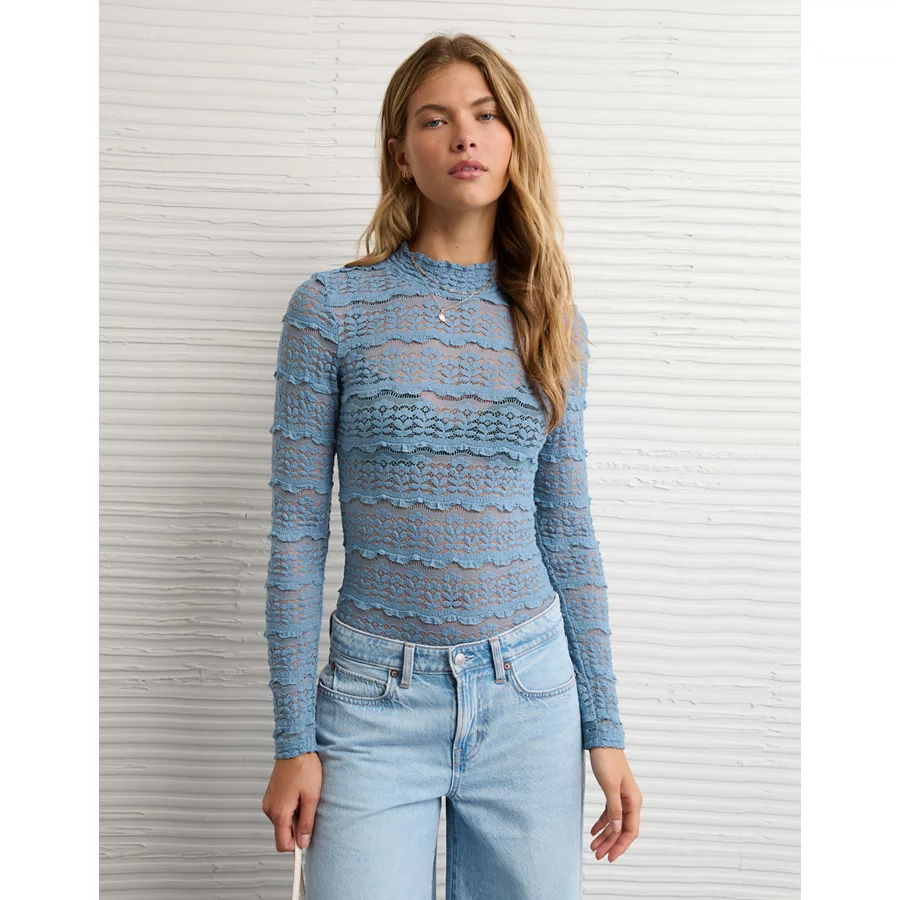 AE Long Sleeve Mock Neck Lace Bodysuit – Powder Blue