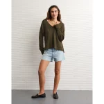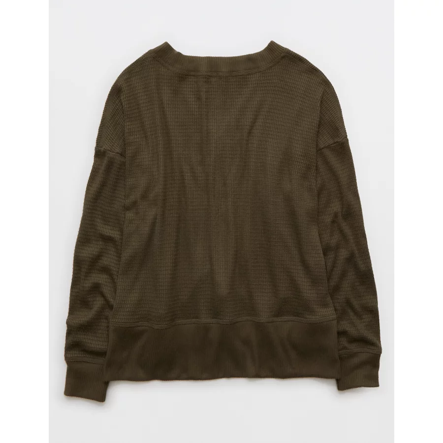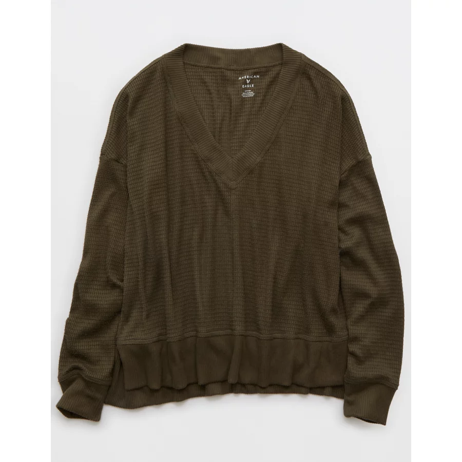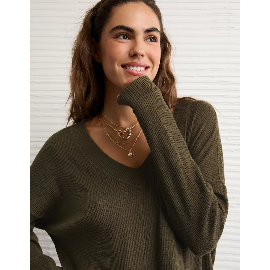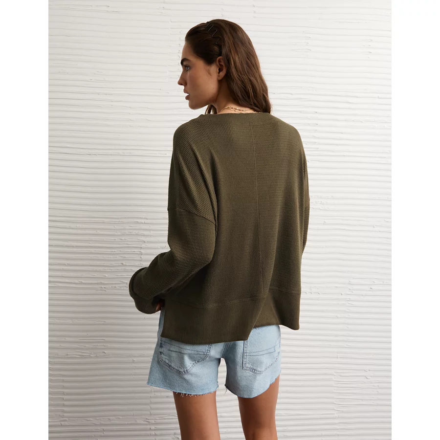 AE Long Sleeve Plush V-Neck Top - Skylight