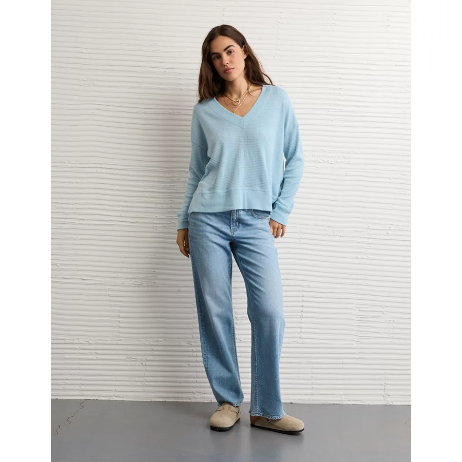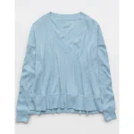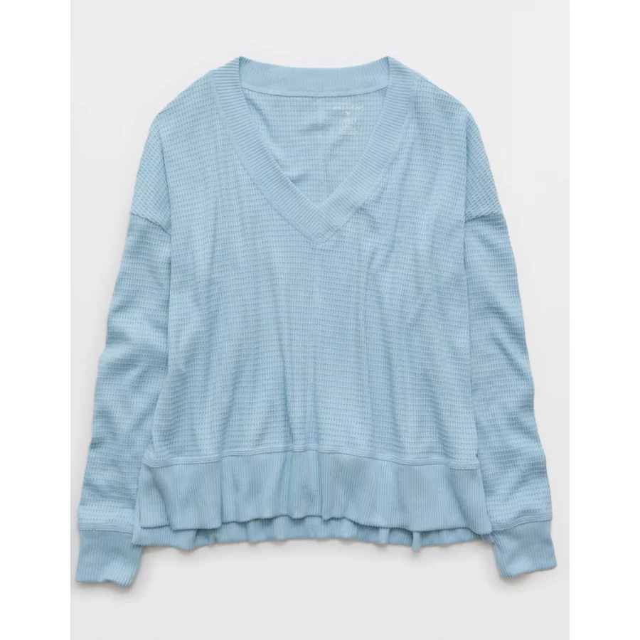 AE Long Sleeve Plush V-Neck Top – Skylight