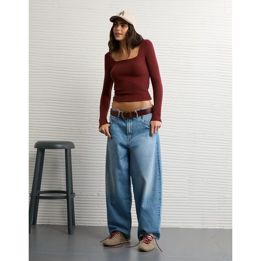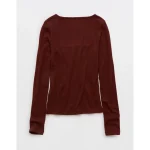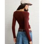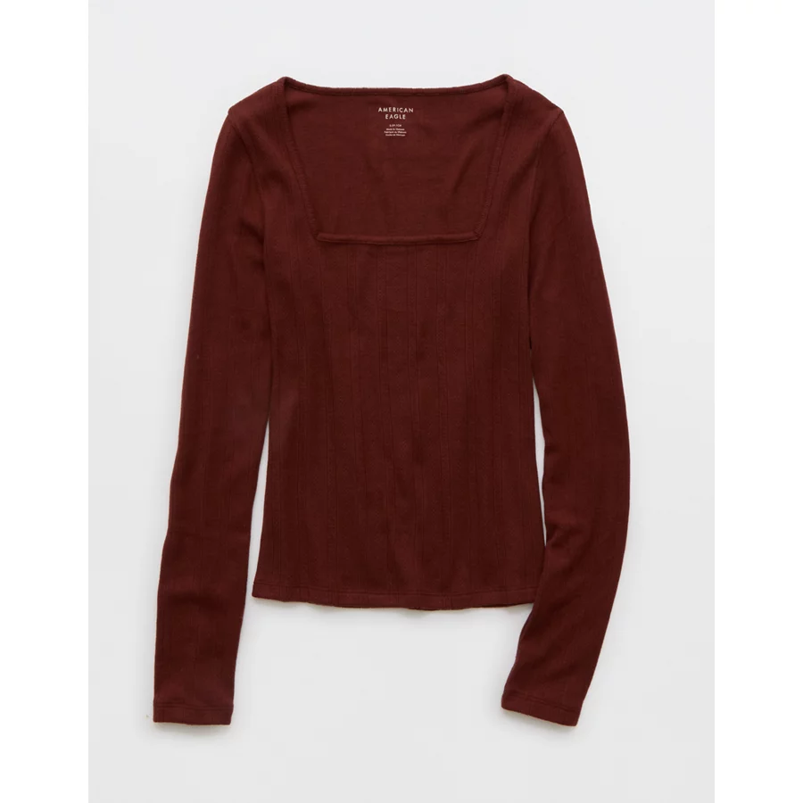 AE Long Sleeve Square Neck T-Shirt – Burgundy