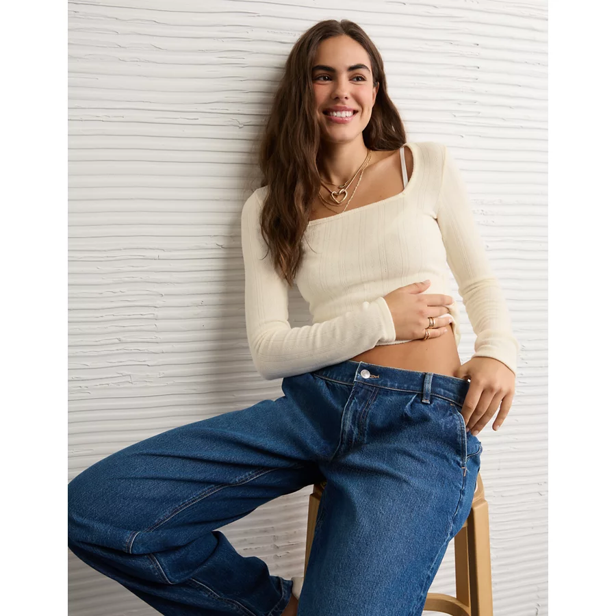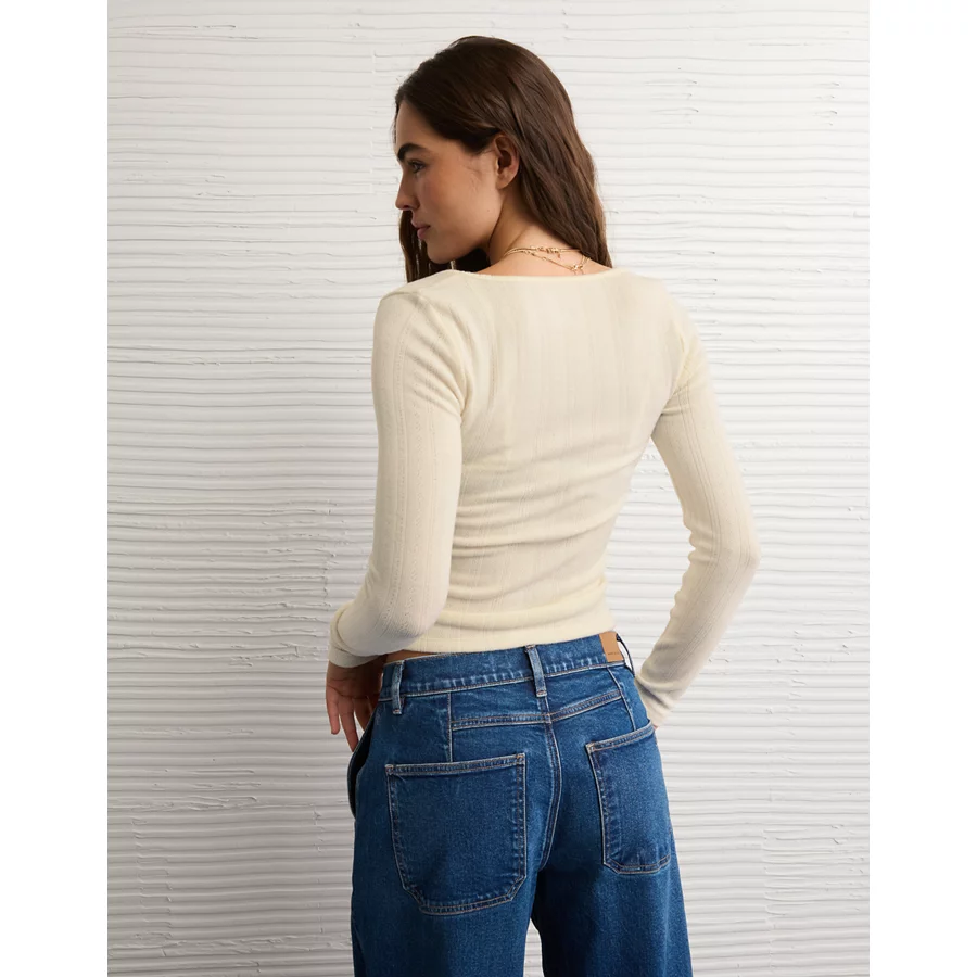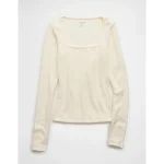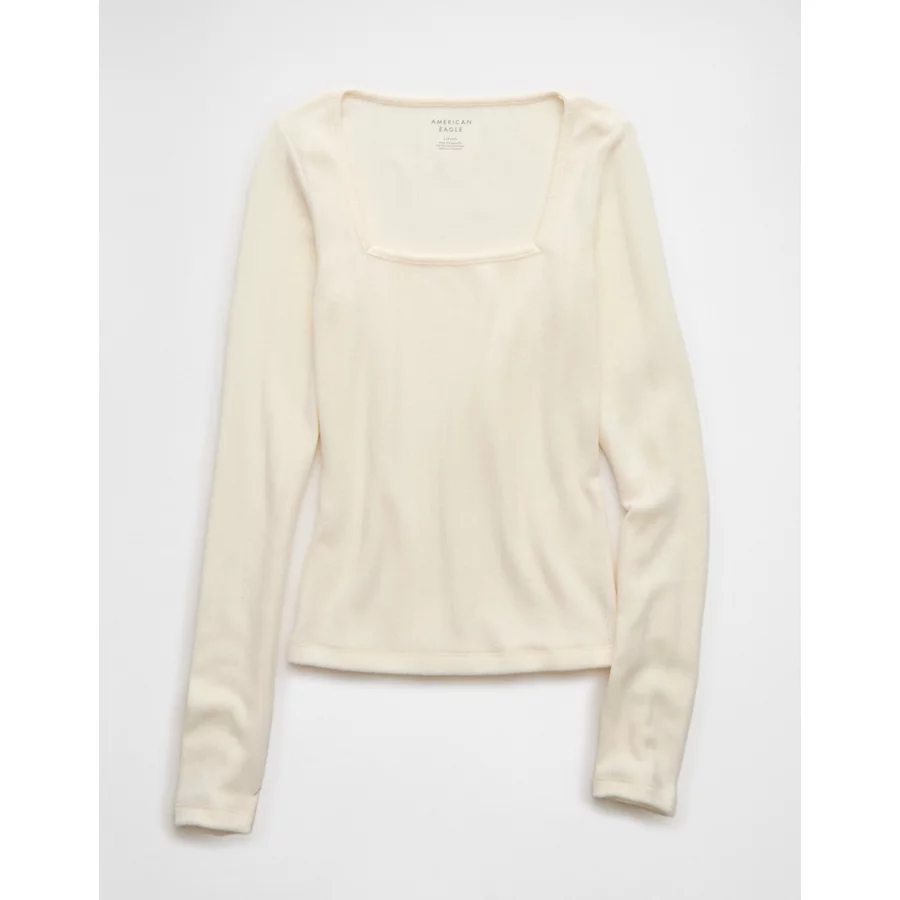 AE Long Sleeve Square Neck T-Shirt – Chalk